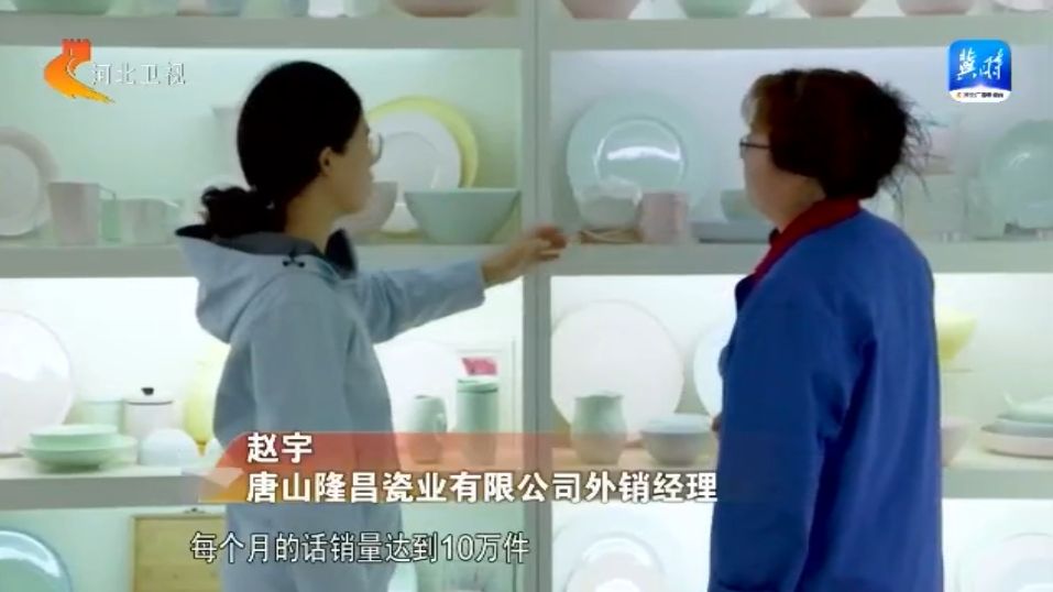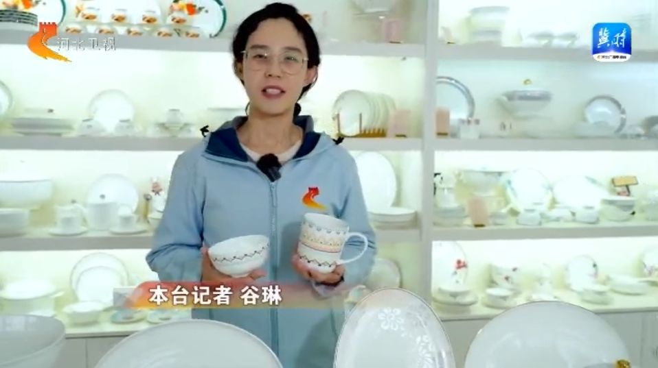 "薄如纸、白如玉、明如镜、声如磬"。我身边这些琳琅满目的瓷器,这12个字,形象概括它们的优良品质。其实我这里还有一组数据,"60%"。您知道吗,中国每出口十件骨质瓷产品,就有六件,来自河北唐山。