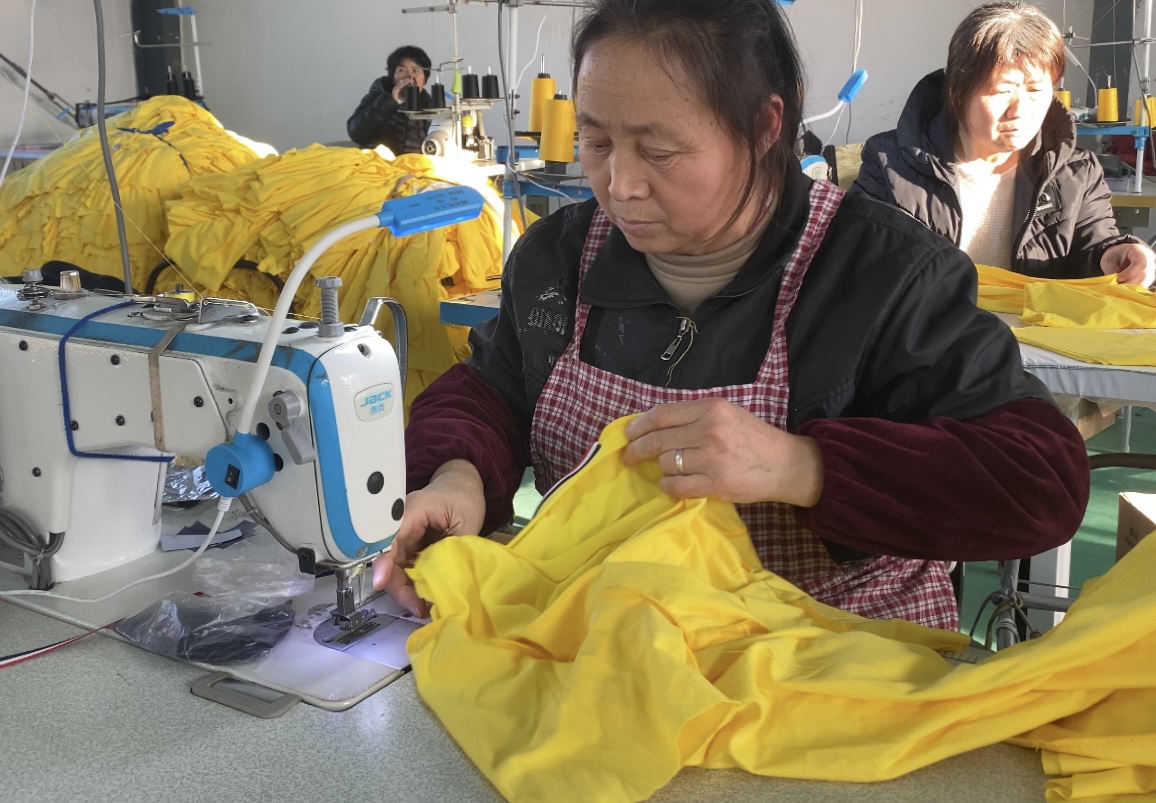 别看服装厂刚开一个月,村民生产的服装质量却很高,大家似乎铆足了劲要“争口气”!