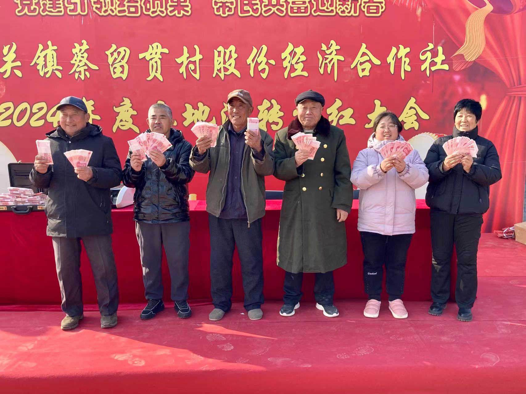 蔡留贯村发放分红已不是头一回。合作社账目清晰显示:2022年,村集体收入52万元;2023年,集体收益较上一年度增加了约10万元;2024年,仅村民分红总额累计已超40万元。逐年递增的数额,无疑是对该村集体合作社土地托管模式成功的有力印证。