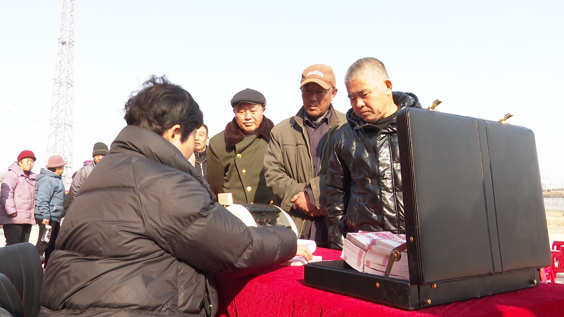 分红现场,秩序井然,村民们依次上前签字、领钱。沉甸甸的现金拿到手,每个人的脸上都绽放出灿烂的笑容,喜悦与满足之情溢于言表。