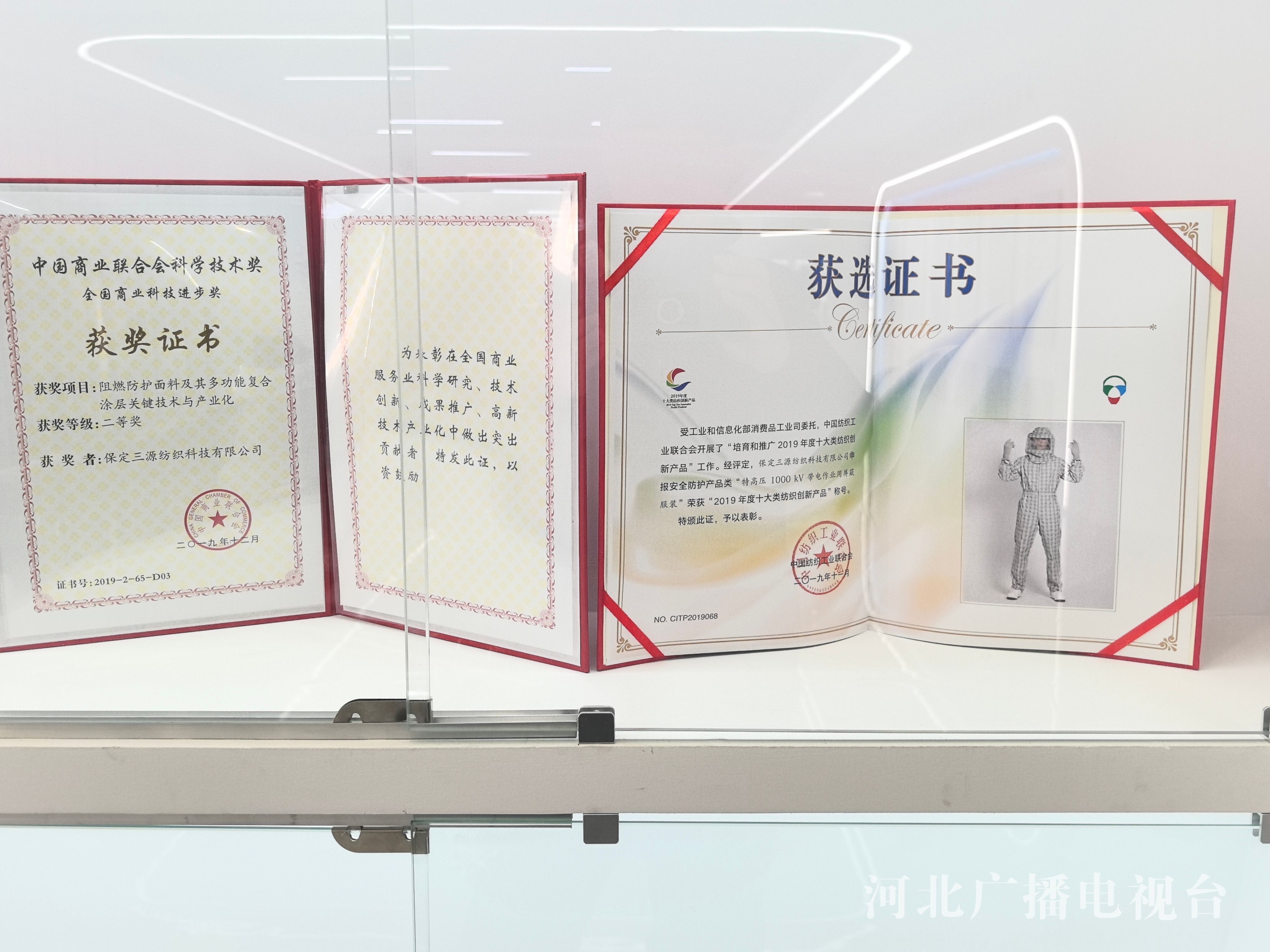 展厅旁边是三源纺织科技公司的试验室,也是防护用纺织品技术研发中心。作为中国纺织工程学会会员,三源纺织自主研发出150多项高新技术纺织品,主导产品有金属系列纺织制品、高分子纤维材料纺织制品、个体防护服装(面料)等。公司拥有棉纺、毛纺、金属纺三条生产线,具备机织、针织、编织、服装设计、制衣一条龙生产与加工能力。