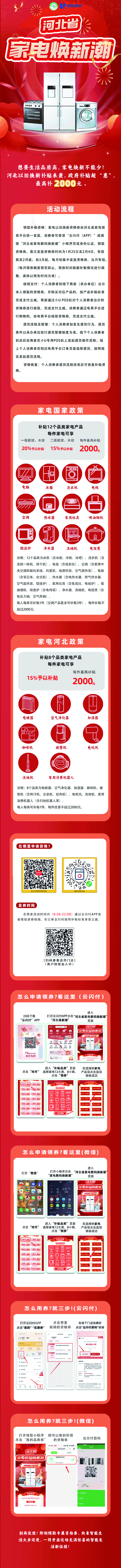 本次活动,采用购买环节支付立减方式对消费者进行补贴。消费者可登录“云闪付(APP)”或微信“河北省家电数码‘焕新潮’”小程序完成身份认证,领取资格券。个人消费者到线下商家(承办单位)出示本人领取的资格券,并购买对应产品的,按产品补贴标准完成支付立减;通过电商平台进行购物的,由电商平台核验资格券,完成支付立减。个人消费者如发生退货行为,退货条件以承办单位现行退货管理制度为准,退货流程结束后可恢复补贴资格。