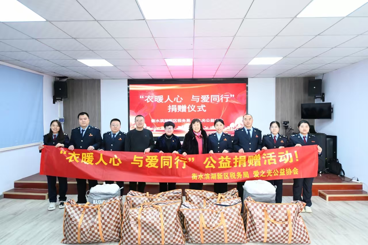 23日上午,天寒地冻,但在国家税务总局衡水滨湖新区税务局院内却涌动着阵阵暖流,“衣暖人心 为爱同行”捐赠仪式在此举行。