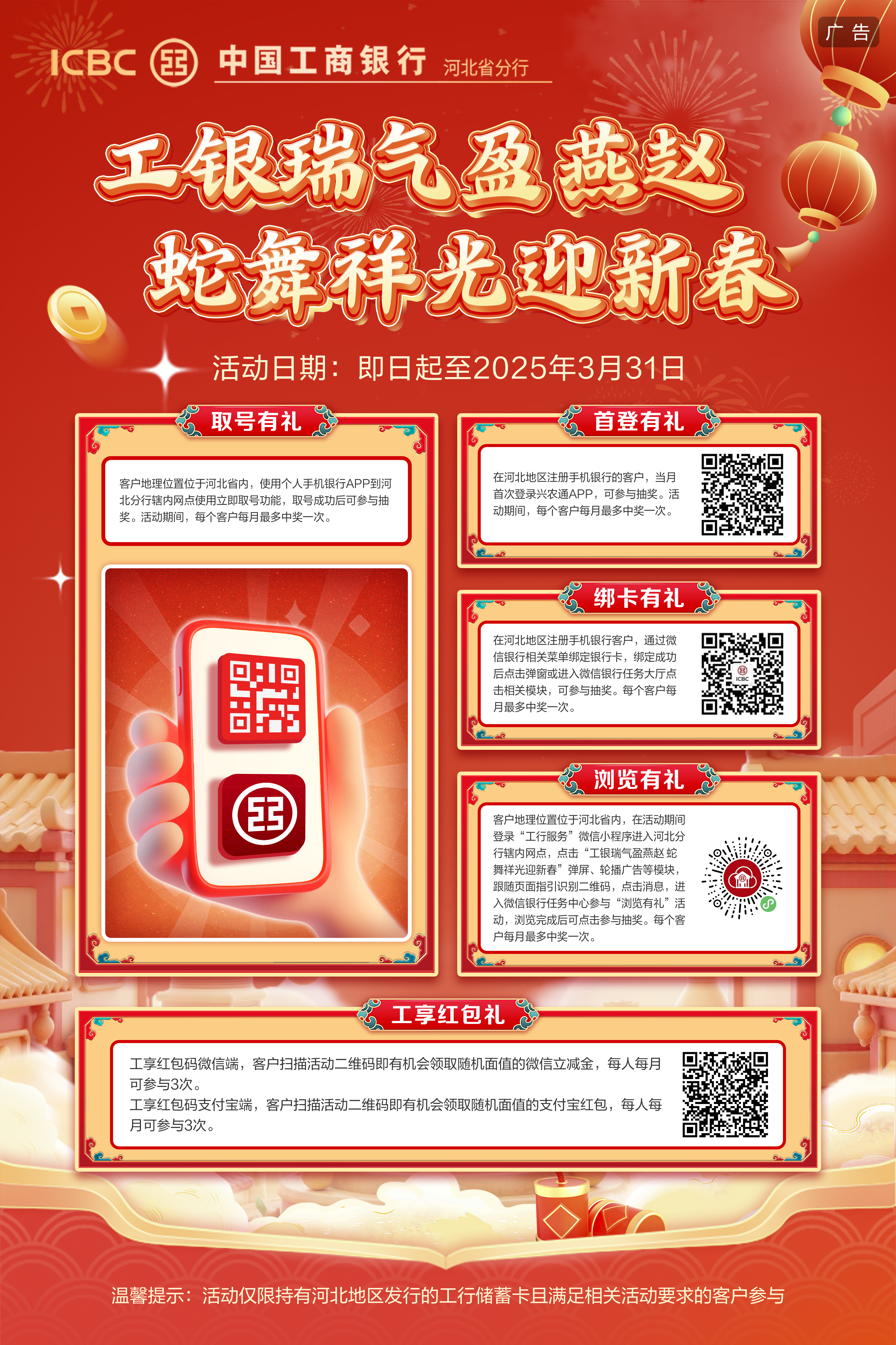击鼓催征开新局,奋楫扬帆勇争先。习近平主席在新年贺词中指出:梦虽遥,追则能达;愿虽艰,持则可圆。我行将持续学习贯彻习近平经济思想的金融篇,以党的二十届三中全会、中央经济工作会议精神为指引,以衡水市委、市政府战略部署为导向,围绕总省行提出的主力军、压舱石、领头雁、标杆行四个定位,以高质量的金融服务在支持我市中国式现代化建设的新征程中砥砺奋进,在服务城乡一体化建设、支持乡村振兴的新时代中勇毅前行,为加快建设经济强市、美丽衡水贡献更多工行力量!