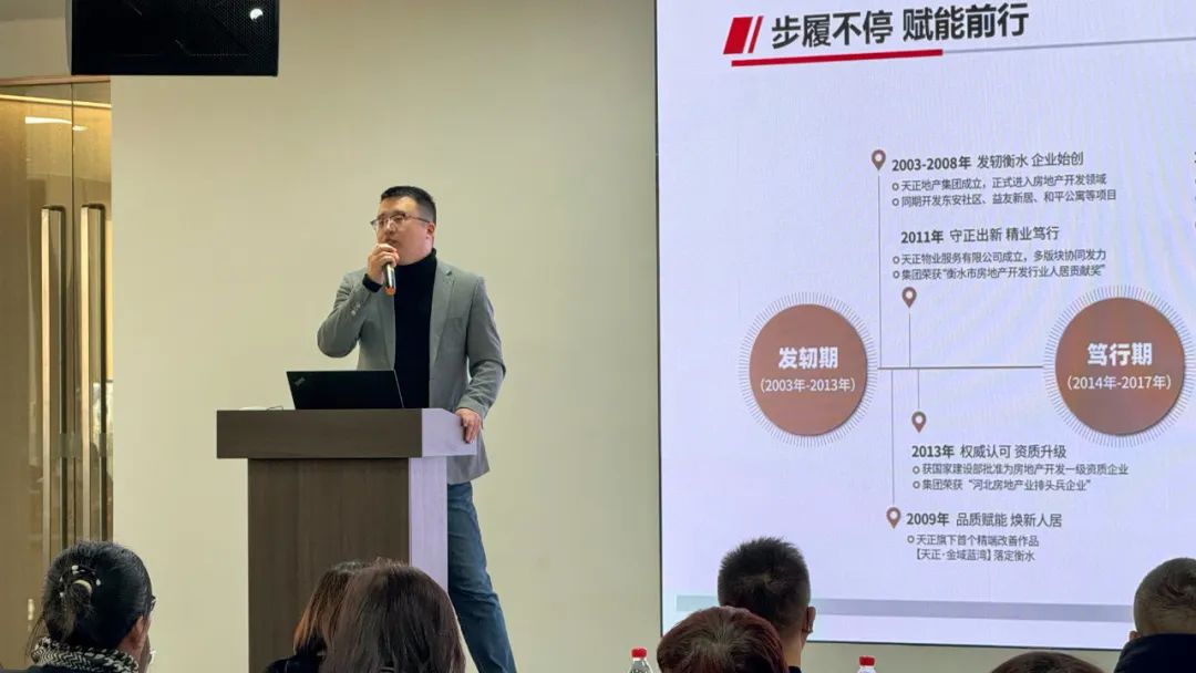 交流会现场,衡水项目营销负责人贾永亮,讲述了集团在衡水扎根、成长、崛起的过程。22年来在衡水开发20多盘,多个品质交付项目,不仅提升了城市人居品质,也赢得了市场的广泛认可与信赖。