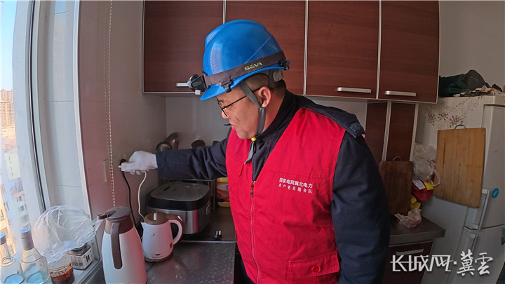 检修工作人员入户检查用电设施。长城网·冀云客户端记者 武佩剑 摄