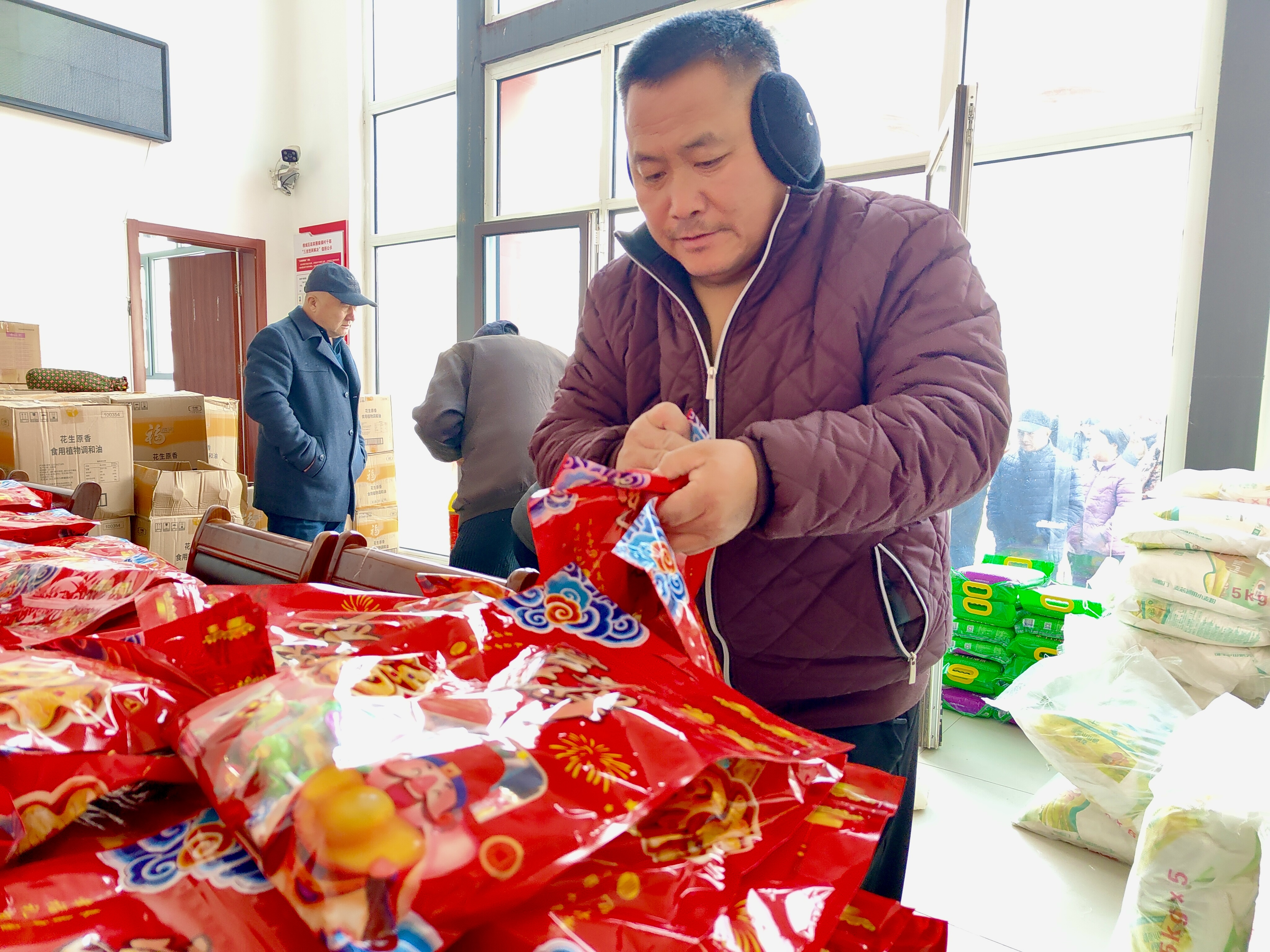“这是年前村里发福利时领的糖。”贡前笑呵呵地说,“不仅有米面油,还发了糖。我们家有四口人,一共能领四份呢,今年过年都不用自己置办了”。