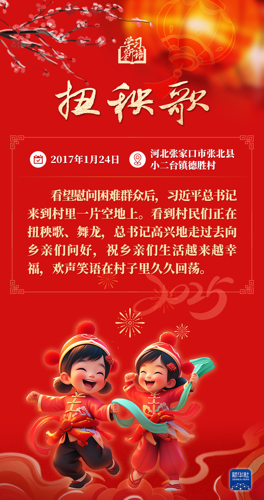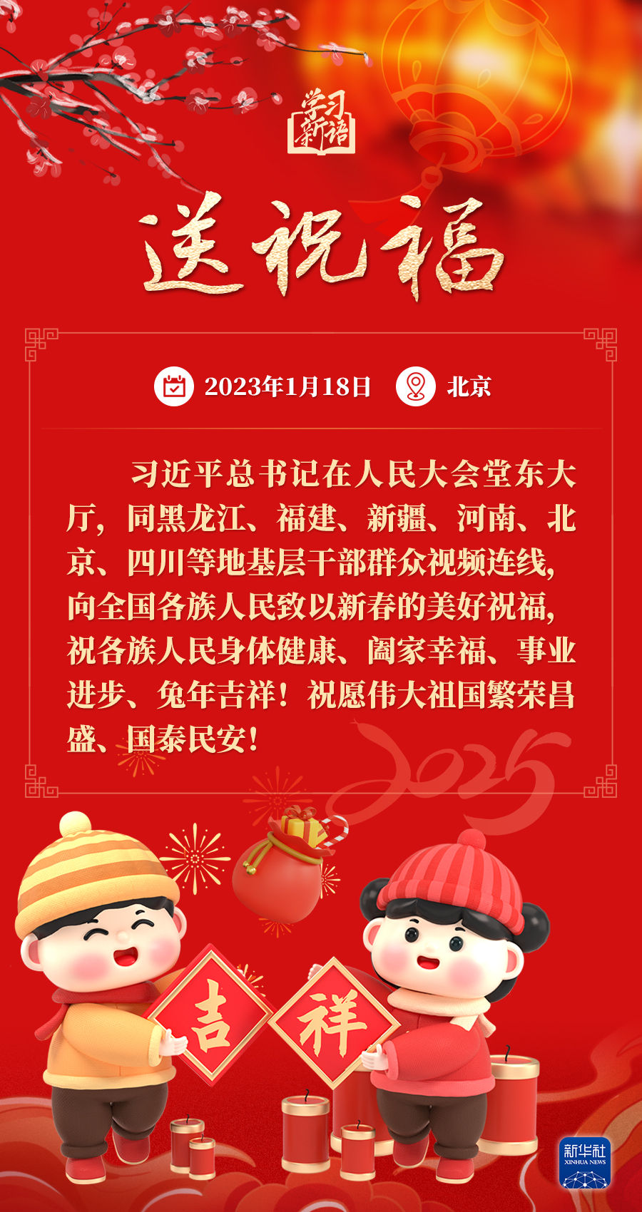 春节是中华民族的传统节日。每当春节来临之际,习近平总书记都会走到群众之中,送祝福、贴“福”字、赏民俗……和大家一起感受丰富多彩的年俗文化。来源:新华社编辑:贾扬阳 来源:新华社 原标题:学习新语·春节|和总书记一起感受浓浓年味 点赞 +1 微博 微信 我要评论 发布 相关推荐 第一观察|习近平总书记同我们共赶新春市集 时政 20小时前 【热气腾腾中国年】习言道|总书记的新春牵挂 要闻 1天前 近镜头|习近平总书记高度重视创新这个“第一动力” 要闻 3天前 习近平总书记关切事|新春万里暖山河 时政 4天前 看图学习·冰雪春天丨“人生能有几回搏” 总书记勉励冰雪健儿 要闻 5天前 第一观察|着眼“十五五”,习近平总书记引领“三农”工作新开局 要闻 02-05 习近平总书记关切事|幸福花开新农家 要闻 02-04 热门 一天 三天 一周 1 印度尼西亚姑娘远嫁阜城小伙 八年坚守绘就最美家风 2 衡水市:让养老成为看得见、摸得着的幸福实景 3 衡水市多源蓄水保春灌 4 【新春走基层】笔墨映笑脸 戏韵连邻里——武邑文昌社区春节文艺演出活动见闻 5 【新春走基层】深州市辰时镇温家庄村的好日子 6 中酿九州啤酒独家冠名衡水网红与实体经济融合发展盛典 7 衡水市区1.4万余盏路灯“体检”迎新春 8 【“十五五”开局看衡水】老技艺融合新动能 “小音符”撬动大产业 ——武强县乐器产业奏响升级“奋进曲” 9 邯港高速衡水段开展春运危化品应急演练 10 回眸来时耕耘路 实干笃行谱新篇 ——衡水二中2025年办学成果岁末盘点 1 线上“云”逛集 线下年味浓 衡水文旅市集圆满收官 全市2026年新春文旅盛宴正式启幕 2 把爱带回家 景县开展2026寒假儿童关爱服务活动 3 真人版猫鼠大作战 青春心动“玩”出来 衡水新春青年联谊活动有“趣”又有“爱” 4 【新春走基层】 赶大集 办年货 品年味 衡水市冀州新发地年货大集火热开市 5 写春联做香囊拓福字 安平县各社区纷纷推出“年味套餐” 6 【新春走基层】 光影科技点亮红韵新春——走进安平台城红色景区 7 印度尼西亚姑娘远嫁阜城小伙 八年坚守绘就最美家风 8 衡水市马文化展览精彩亮相 市民沉浸式感受中华马文化 9 策马扬鞭启新程 衡水市五院交出2025医疗民生答卷 10 【新春走基层】寻年味 叙乡情 促和谐 衡水市冀州社区新春活动温情满溢 1 春节期间衡水推出近200项文旅活动 2 破局与生长 ——2025年十大亮点见证基础教育的衡中力量 3 衡水移动:织密通信“保障网” 守护万家“团圆年” 4 戏曲搭台传古韵 服务下乡暖民心 衡水市景县举办“戏曲过大年”文化惠民活动 5 衡水市首个市属高速公路党群服务驿站挂牌启用 6 全省首笔!工行冀州支行3000万元“购建贷”赋能棉纺产业智能化升级 7 剪福字 贴窗花 武邑开展童心敬老活动传承美德 8 烟火聚大集 年味满武邑 ——衡水市首届供销年货会暨武邑县2026年供销大集见闻 9 故城:大棚香椿抢“鲜”上市 10 烟火入画 乡愁为魂 广告 广告 广告 24小时 1 在中国式现代化征程上建功立业——习近平总书记在北京市考察时的重要讲话引发干部群众热烈反响 2 【讲习所·中国与世界】新年首次地方考察 习近平点出这个“关键” 3 【衡视频】衡水市第五人民医院举行2025年度总结表彰大会 4 【新春走基层】衡水市桃城区邓庄镇邓庄村:蔬菜礼盒成为富民“金饭碗” 5 衡水市桃城区邓庄镇邓庄村422名村民喜提新年“大礼包” 6 坚守岗位 医暖新春 7 【新春走基层】吆喝声里年味儿浓——走进阜城县漫河大集 8 爱伴桑榆 情暖夕阳 “湖小荷”志愿者走进赵家圈镇养老院 9 【新春走基层】大棚草莓红 采摘正当时——走进桃城区和美采摘园 10 视频∣雍锦世家召开企业文化表彰大会