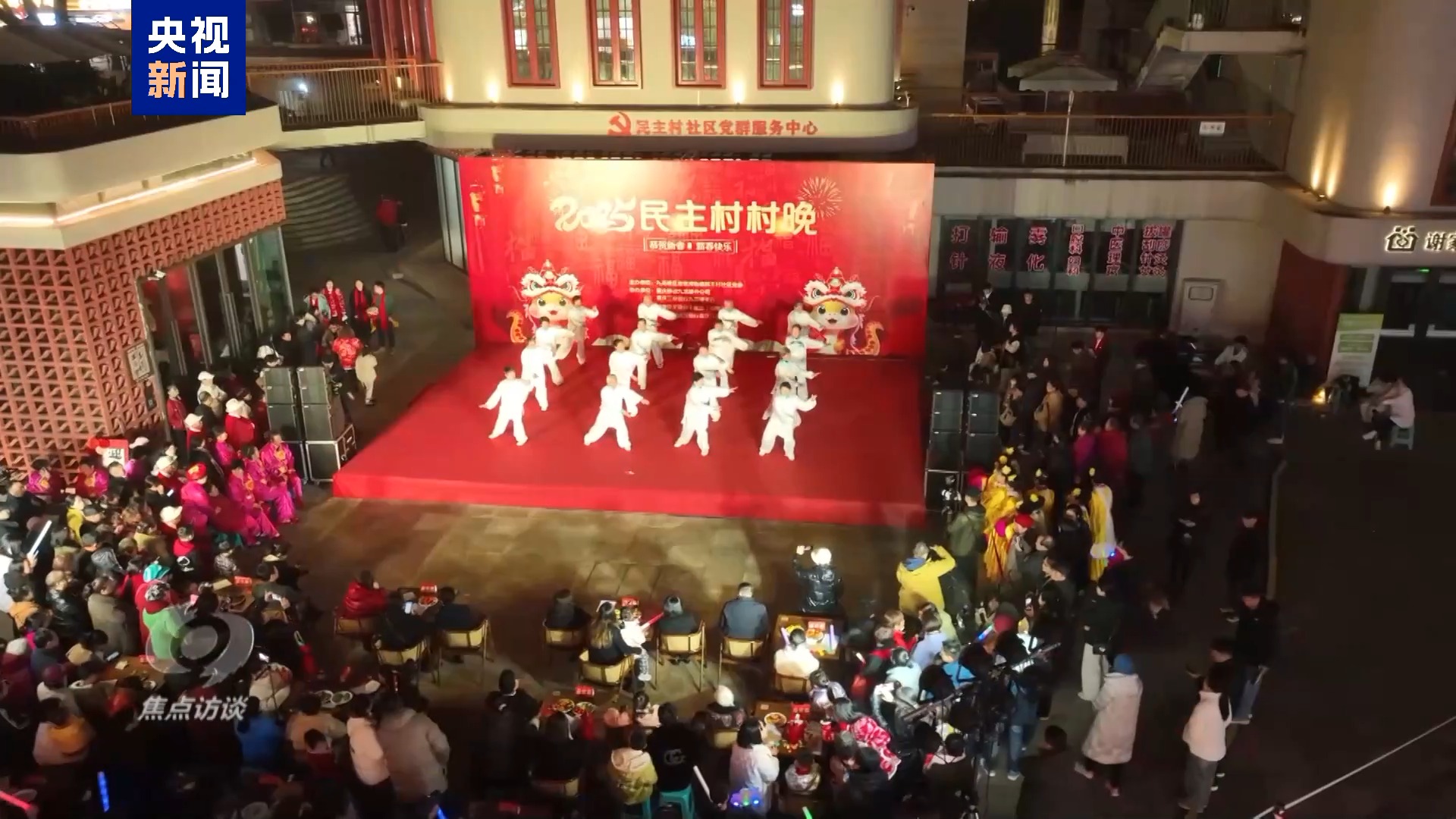 腊月二十四,民主村社区迎来了一场重量级的演出——“村晚”。由建设厂退休职工彭其碧牵头组建的民主村彭孃孃文工团一共表演了5个节目,演员50多人,全都是社区里的老居民。伴随着民主村的更新改造,文工团从十几人的小小锣鼓队壮大成400多人的文艺团体,成了民主村一张远近闻名的名片。