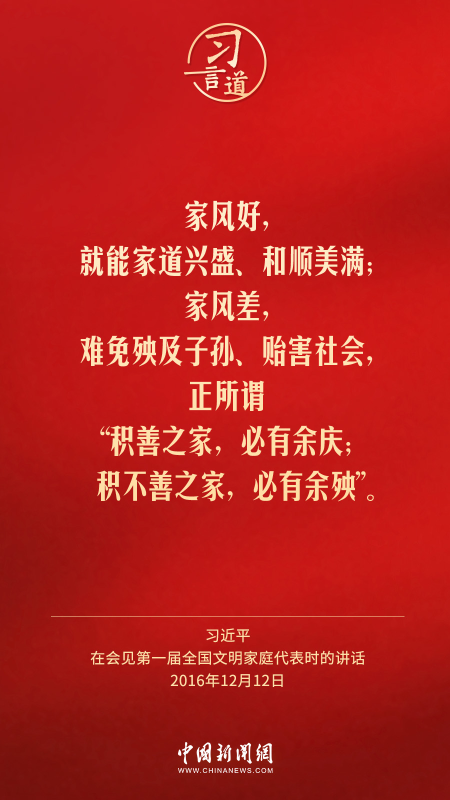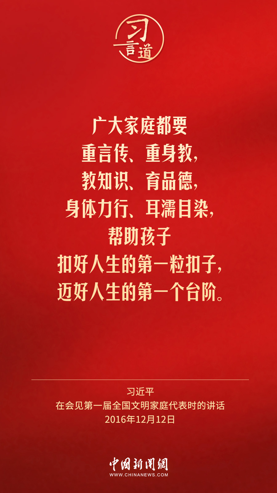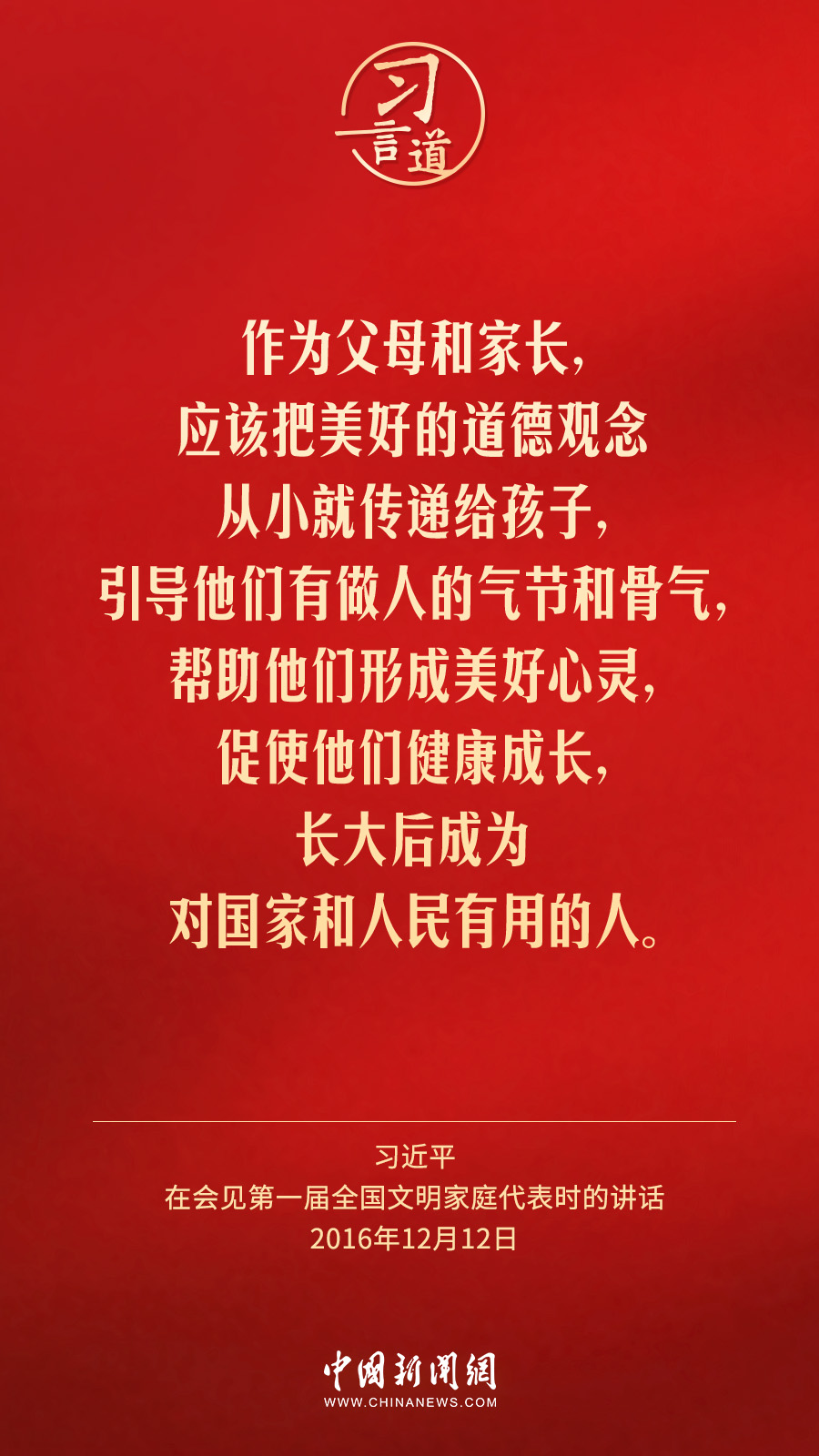 2月1日出版的《求是》杂志发表中共中央总书记、国家主席、中央军委主席习近平2016年12月12日在会见第一届全国文明家庭代表时讲话的一部分《注重家庭,注重家教,注重家风》。
