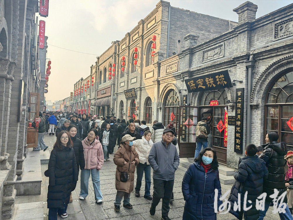 2月2日,游客们在保定西大街游览。王维康摄