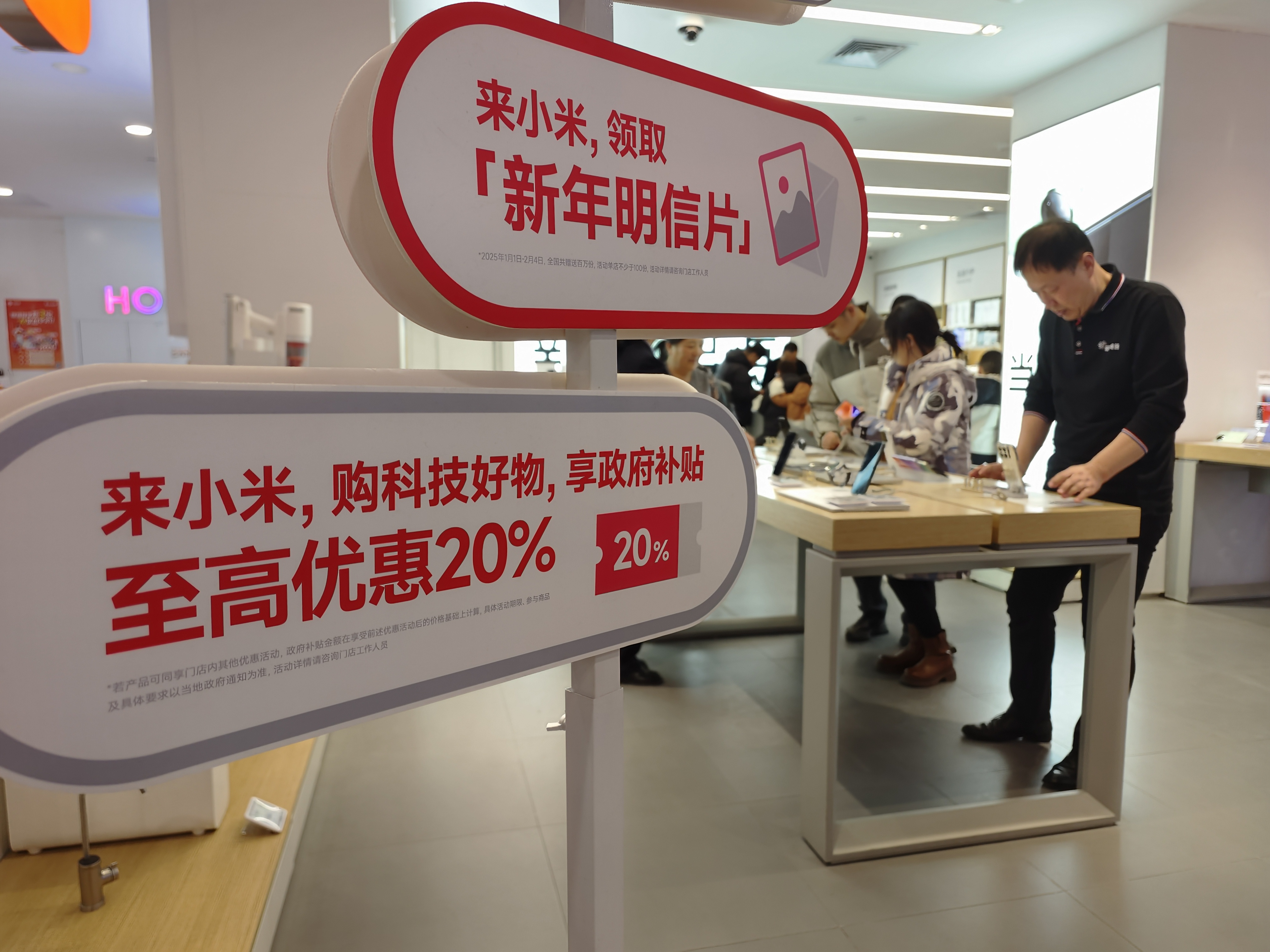 “我们店里卖得最好的是3000元至4000元左右的中高端手机,这部分机型可以完全享受到500元的‘国补’满额优惠。”销售人员张敏告诉记者,“国补”政策落地极大地激发了消费者的购买热情,春节期间,门店客流量呈爆发式增长,咨询、下单的消费者一波接着一波,忙的时候连中午饭都顾不上吃。各类数码产品销量也随之明显上涨,其中,手机日销售量较1月初相比翻了一番还多,有些型号的手机甚至出现了断货现象。