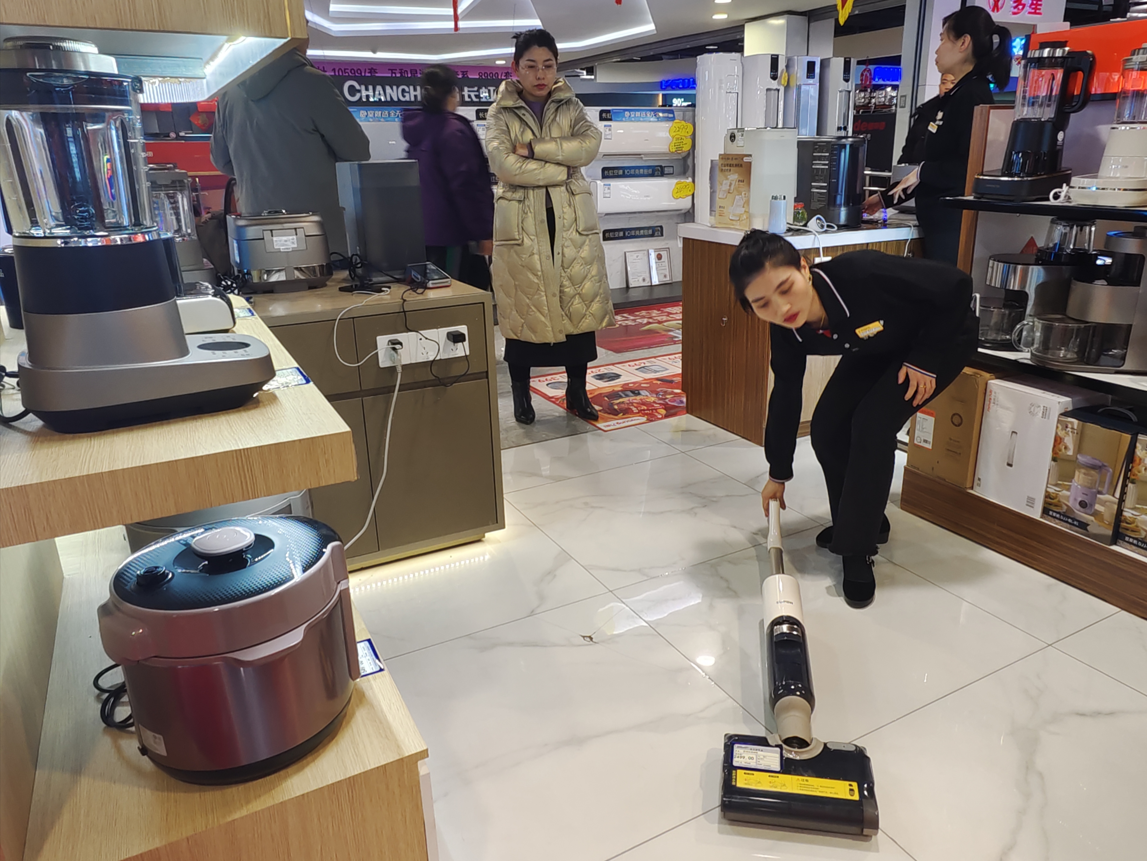 在市区一家商场家电区,准备春节后乔迁新居的市民韩鹏和家人经过精心对比选购,把洗衣机、电视和5台空调等7件家电“打包”带回新家。“没想到补贴力度这么大,太划算了!”韩先生细算下来:7件电器原价总计41600元,商场、电器品牌方、政府三重补贴叠加,最后实际只花费30300元,节省了11300元。“持续用力、更加给力的政策惠及更多消费者,更为我们商家带来信心。”该商场家电部经理胡靖威介绍,自从去年开展家电“以旧换新”政策以来,卖场电器销量不断增长,尤其是智能、绿色、节能等改善型品质家电均呈现爆发式增长。今年政策延续后,商场立即启动家电年货节,第一时间联合品牌厂商,推出系列优惠促销活动,助力市场消费。
