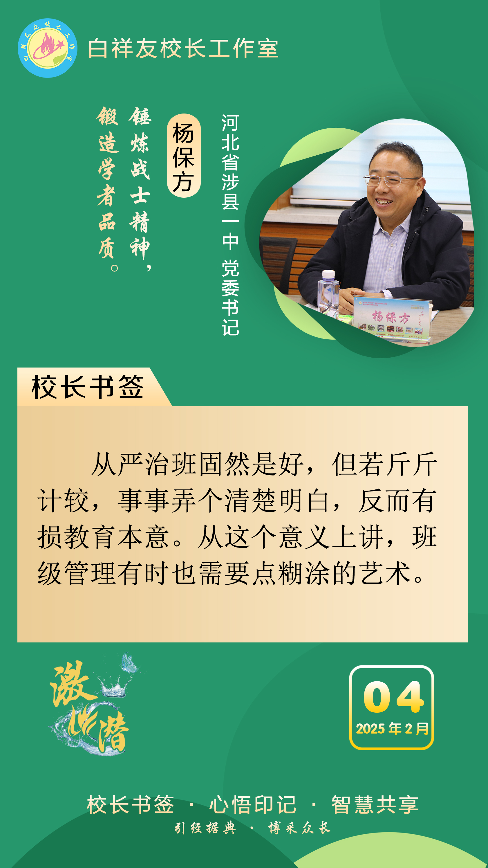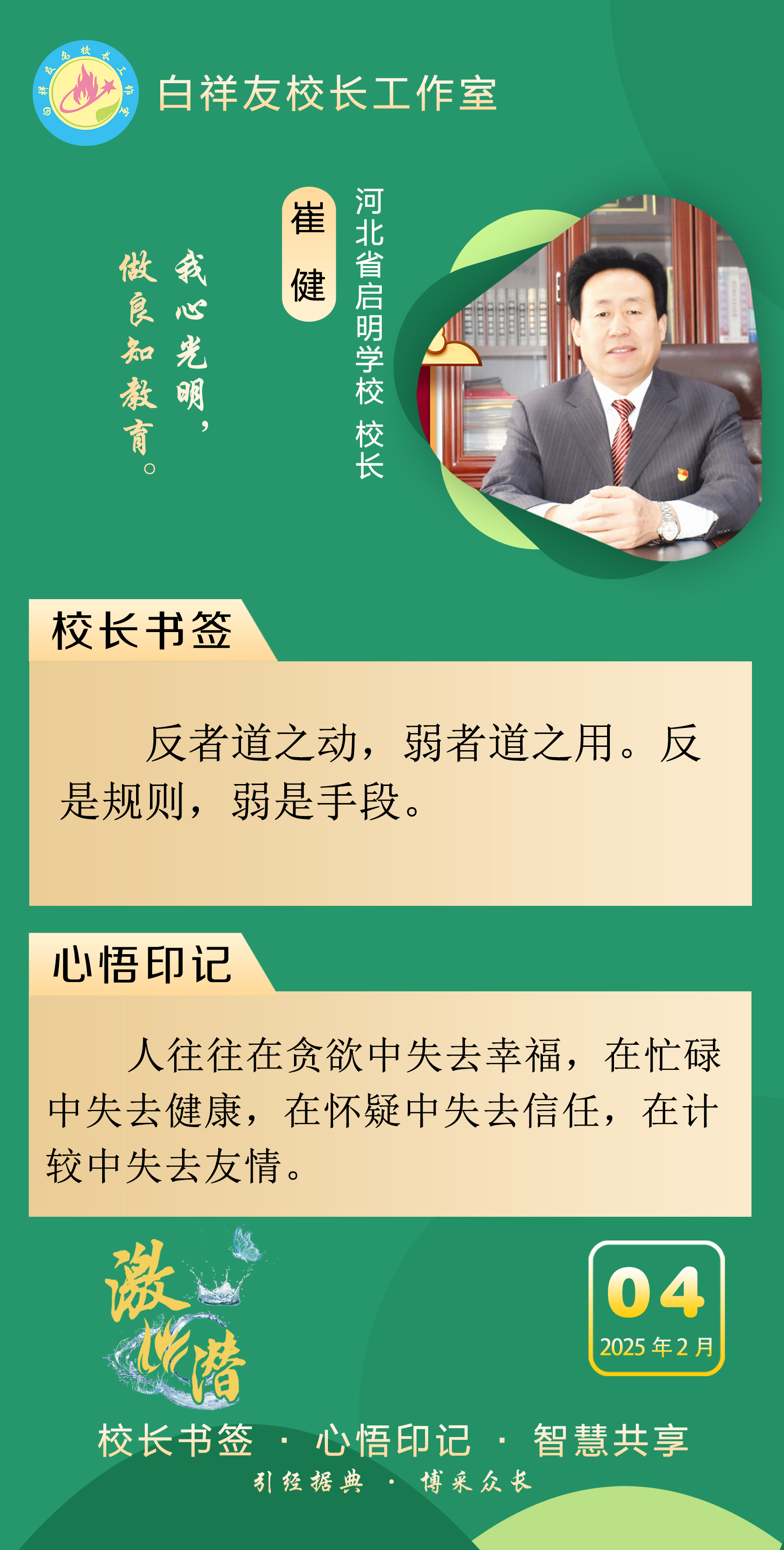 “白祥友校长工作室”成立于2019年4月,是教育部“国培计划”中小学名校长领航工程、河北省首批名校长工作室,目前省内外成员校56个。工作室坚持“资源共享、智慧共融、互助共赢”理念,已成为思想碰撞的交流场,资源共享的品牌站,成果展示的辐射源。