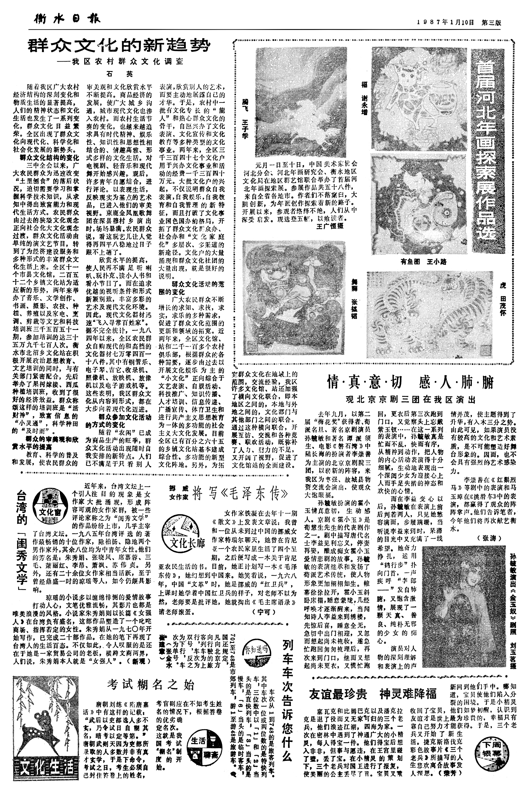 诸多变化,从1987年1月10日 《衡水日报》3版《群众文化的新趋势——我区农村群众文化调查》一文中可见一斑。
