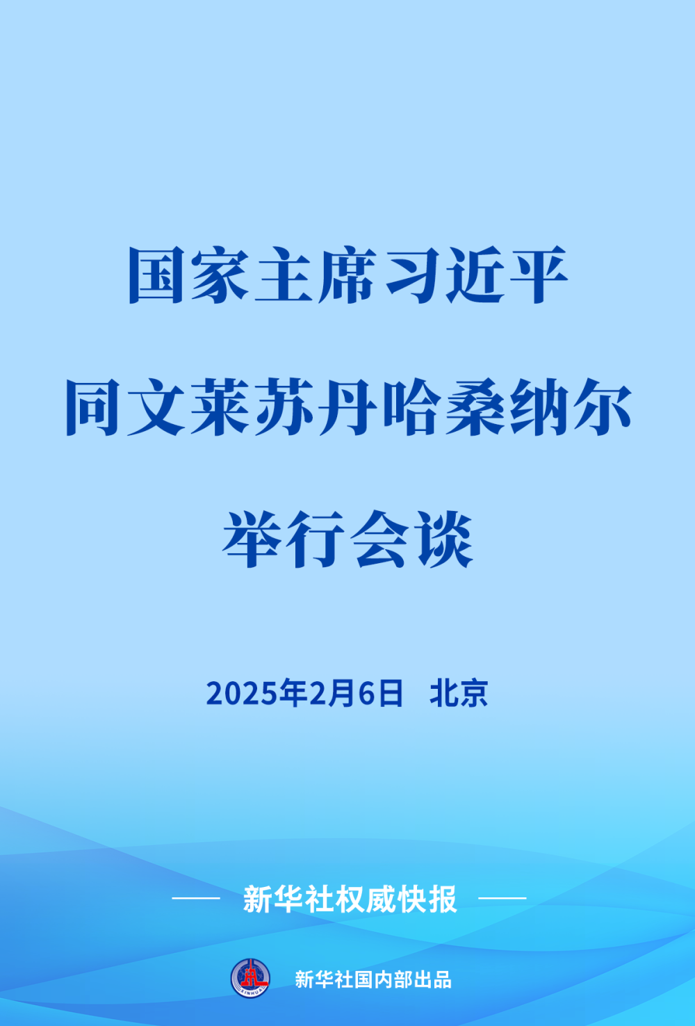 2月6日上午,国家主席习近平在北京人民大会堂同来华进行国事访问的文莱苏丹哈桑纳尔举行会谈。