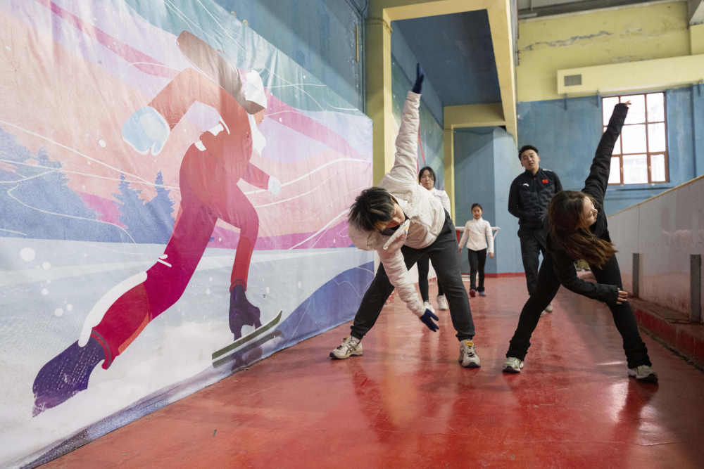 2025年1月13日,哈尔滨花样滑冰队队员参加陆上训练。哈尔滨花样滑冰队成立于1954年,先后有400余人次代表国家参加各类比赛,让哈尔滨有了“花滑之城”的美誉。