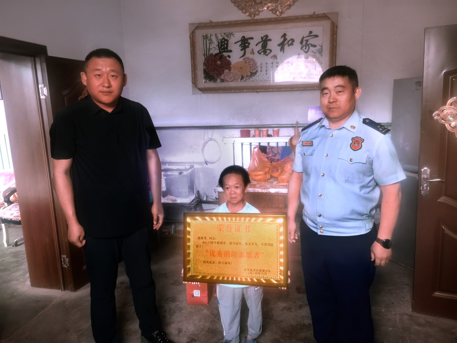 赵成龙获颁“优秀消防志愿者”荣誉。(受访者供图)