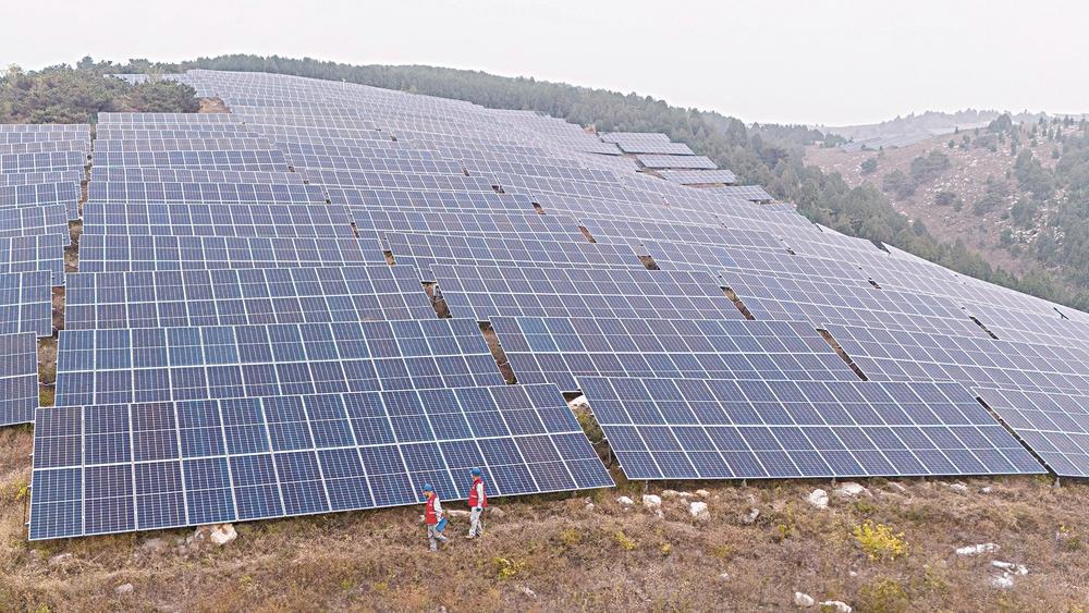 国网唐山供电公司员工在大唐石窝光伏电站帮助客户检查光伏发电设备。(资料片) 桂宝利 摄