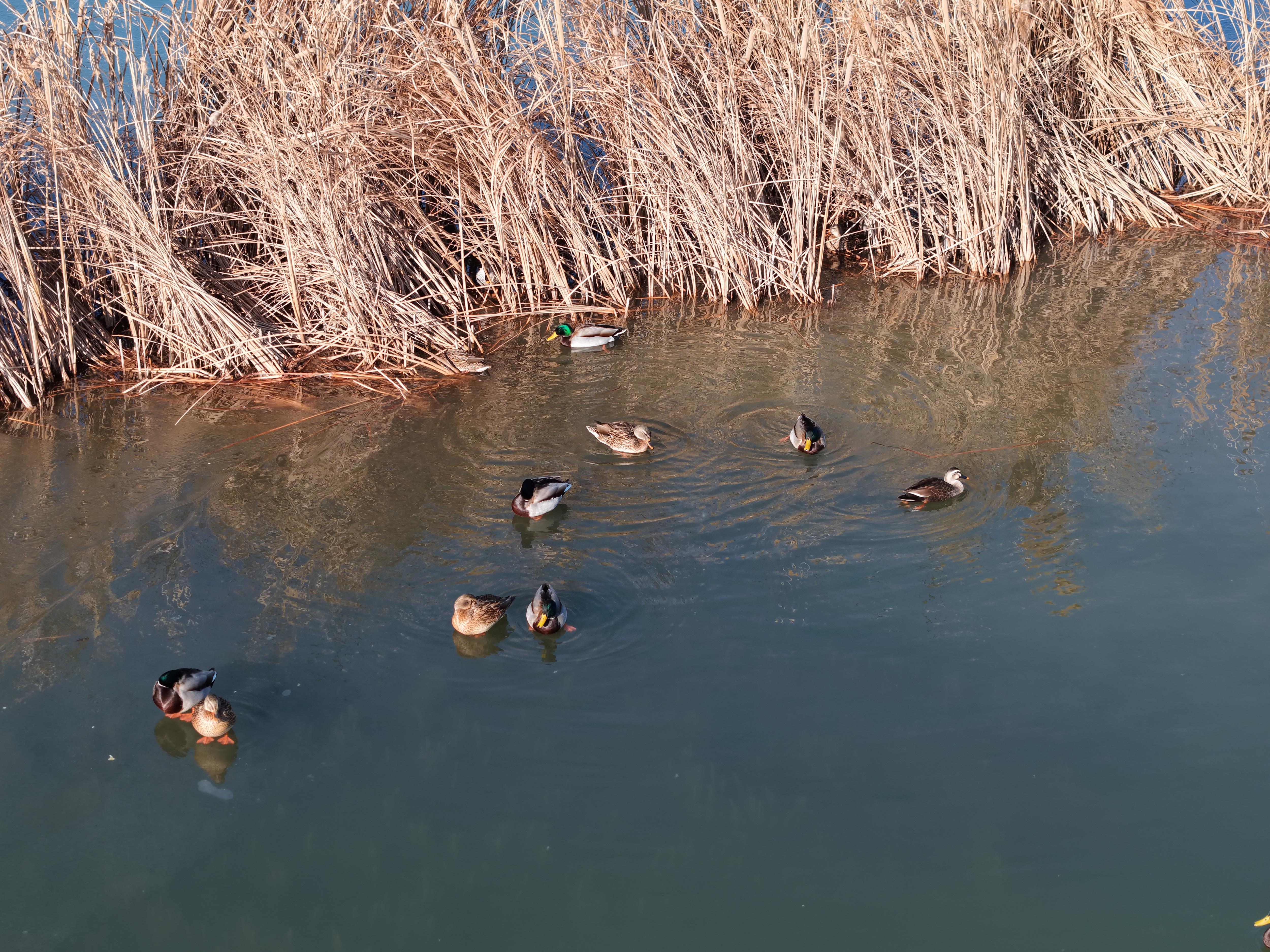 在衡水湖这片广袤的湿地之上,生态的和谐之美正淋漓尽致地展现着。远远望去,那宛如绿宝石般的冰面,在阳光的映照下闪烁着迷人的光泽,宛如大自然馈赠的绝美舞台。而鸭类家族,便是这舞台上当之无愧的主角。