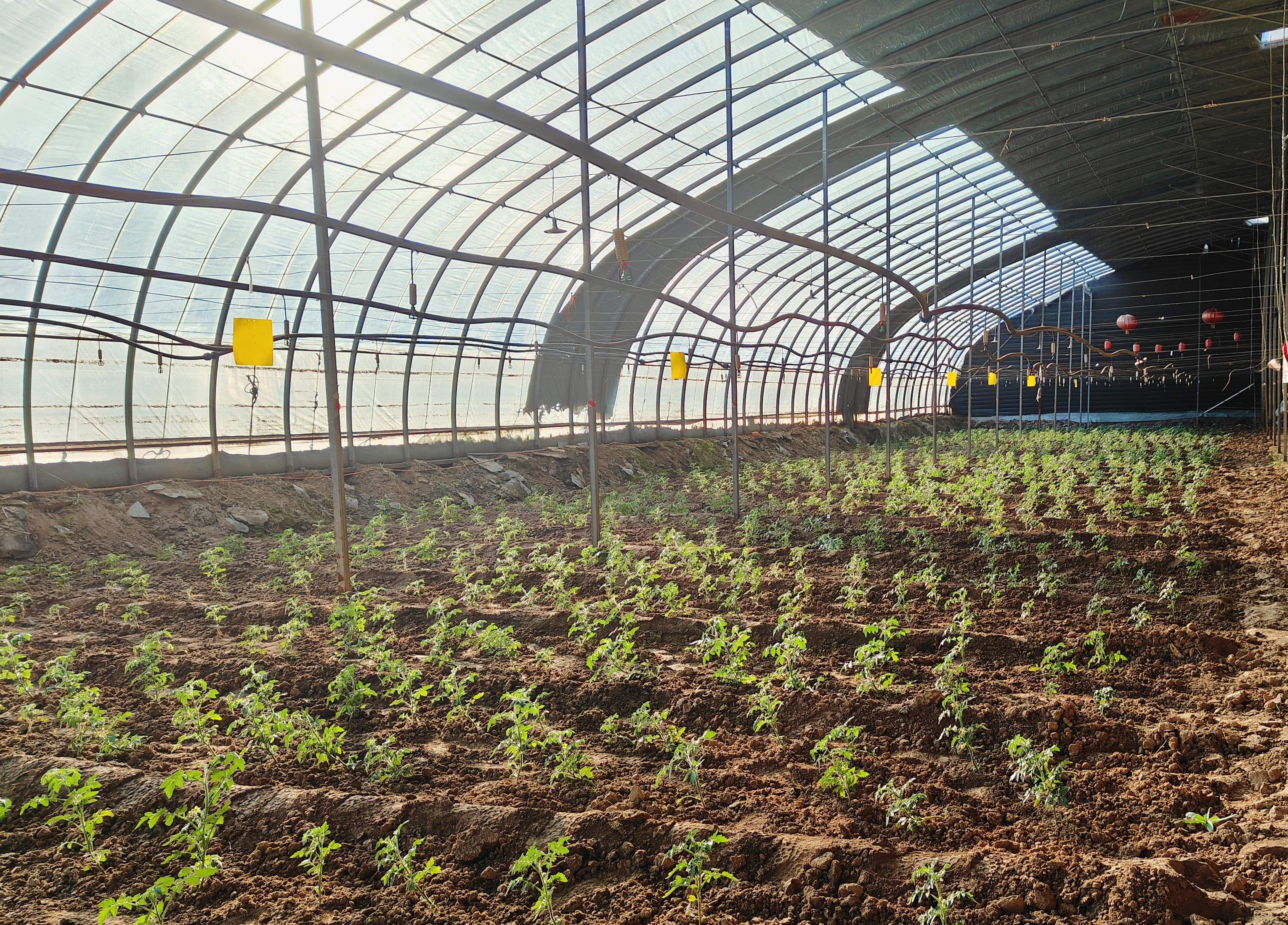 走进吕士民夫妻的西红柿大棚,一股暖意扑面而来,与棚外的寒风形成鲜明对比。棚内,一排排翠绿的西红柿植株整齐排列,枝叶间点缀着朵朵黄色小花,仿佛一颗颗小星星,预示着丰收的希望。
