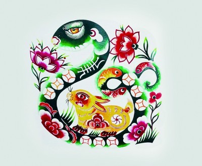 河北省蔚县剪纸非遗代表性传承人高佃亮创作的蛇年新春剪纸作品。河北省蔚县县委宣传部供图