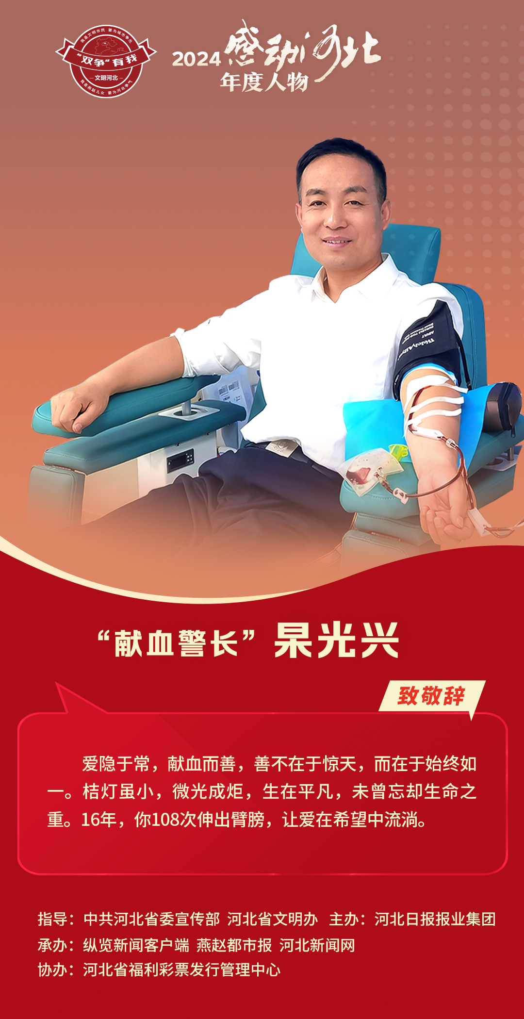来源:河北新闻网原标题:“双争”有我 感动河北④丨“献血警长”杲光兴:用“小桔灯”汇聚微光照亮希望