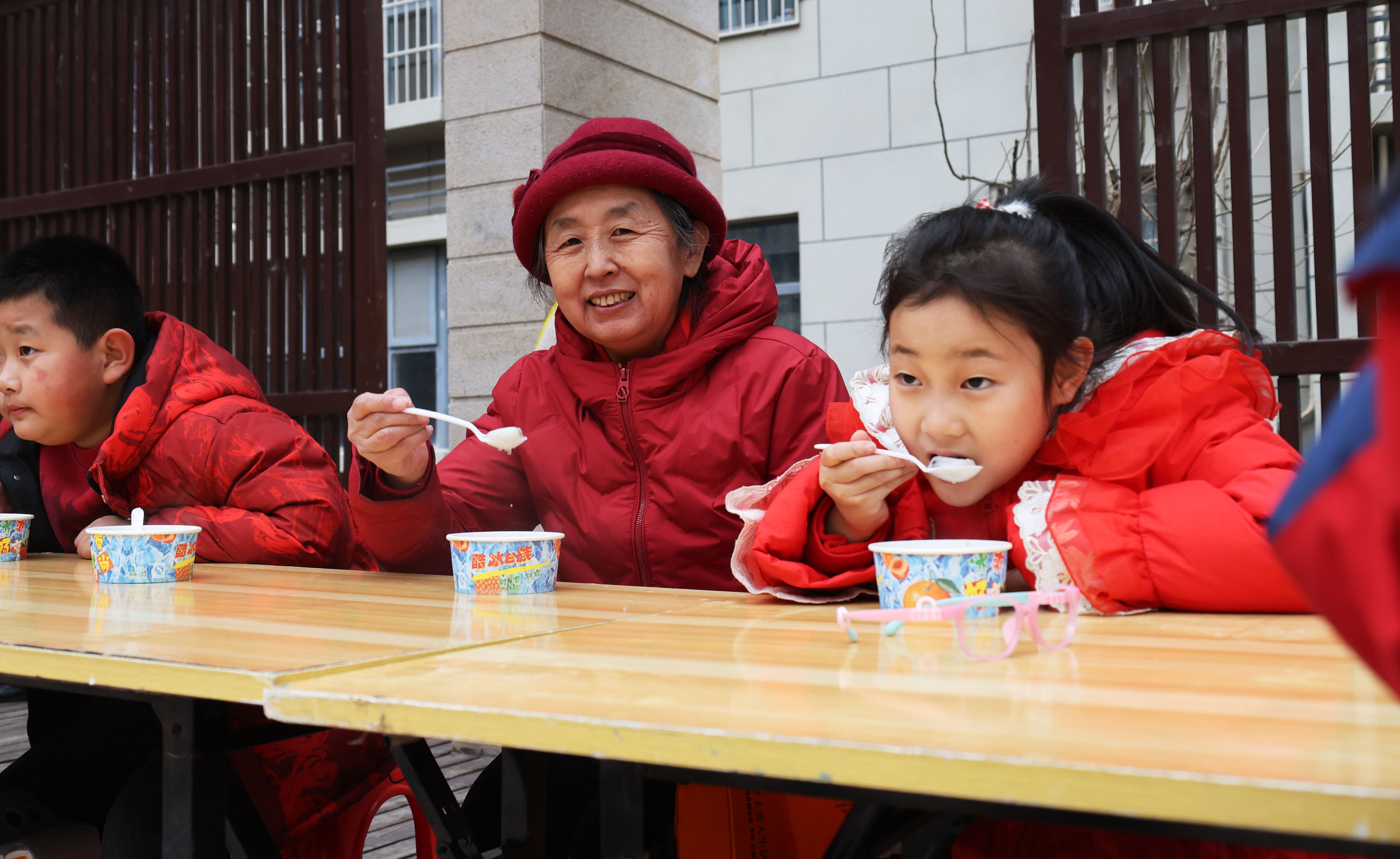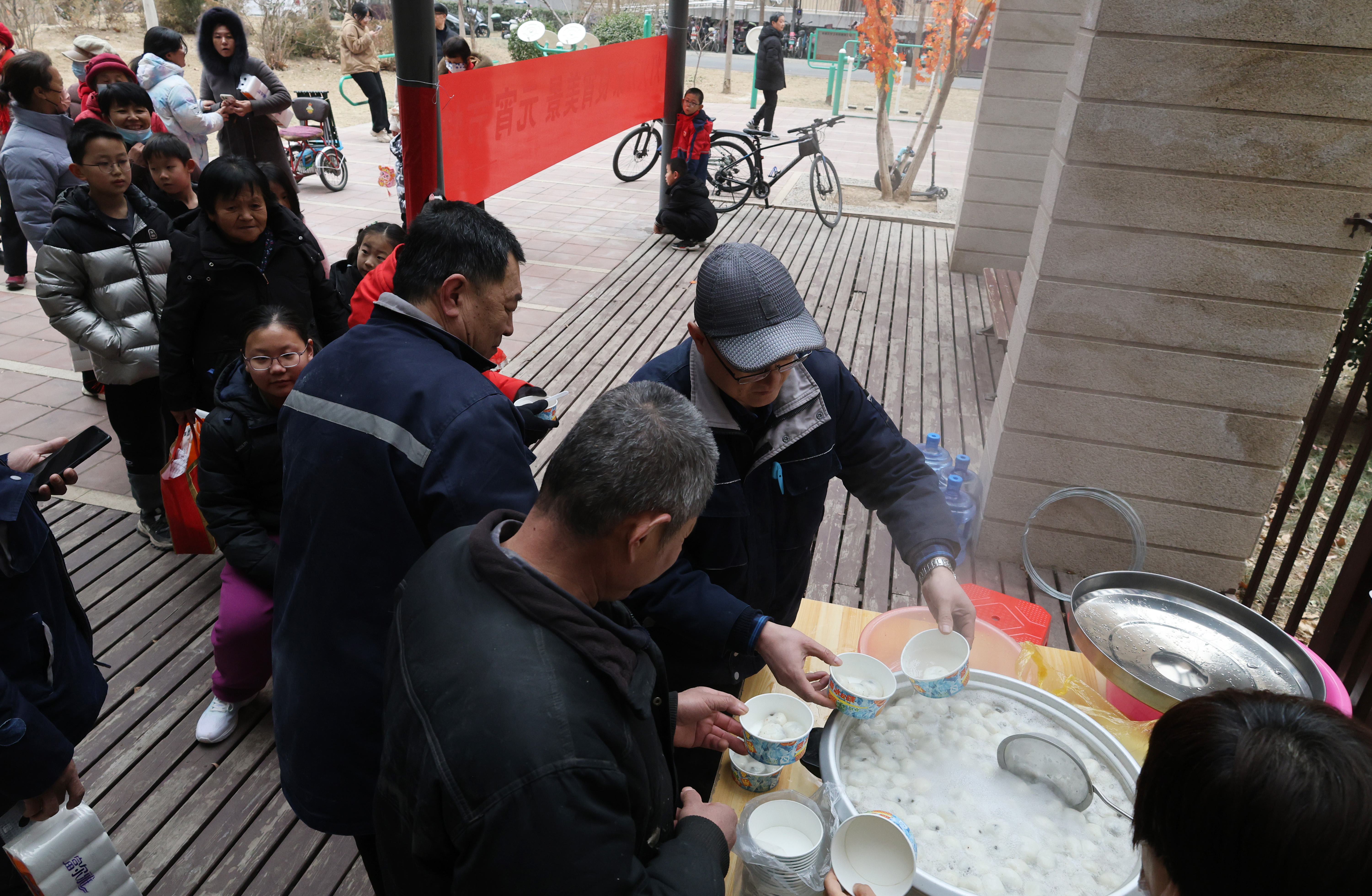 不远处的“共品汤圆”区域,一口大锅里的汤圆在沸水中翻滚,热气腾腾,香甜的气息弥漫在空气中。居民们自觉排起长队,眼神中满是期待。领到汤圆的人们,端着热气腾腾的碗,围坐在一起。大家一边品尝着软糯香甜的汤圆,一边分享着生活中的点滴趣事。
