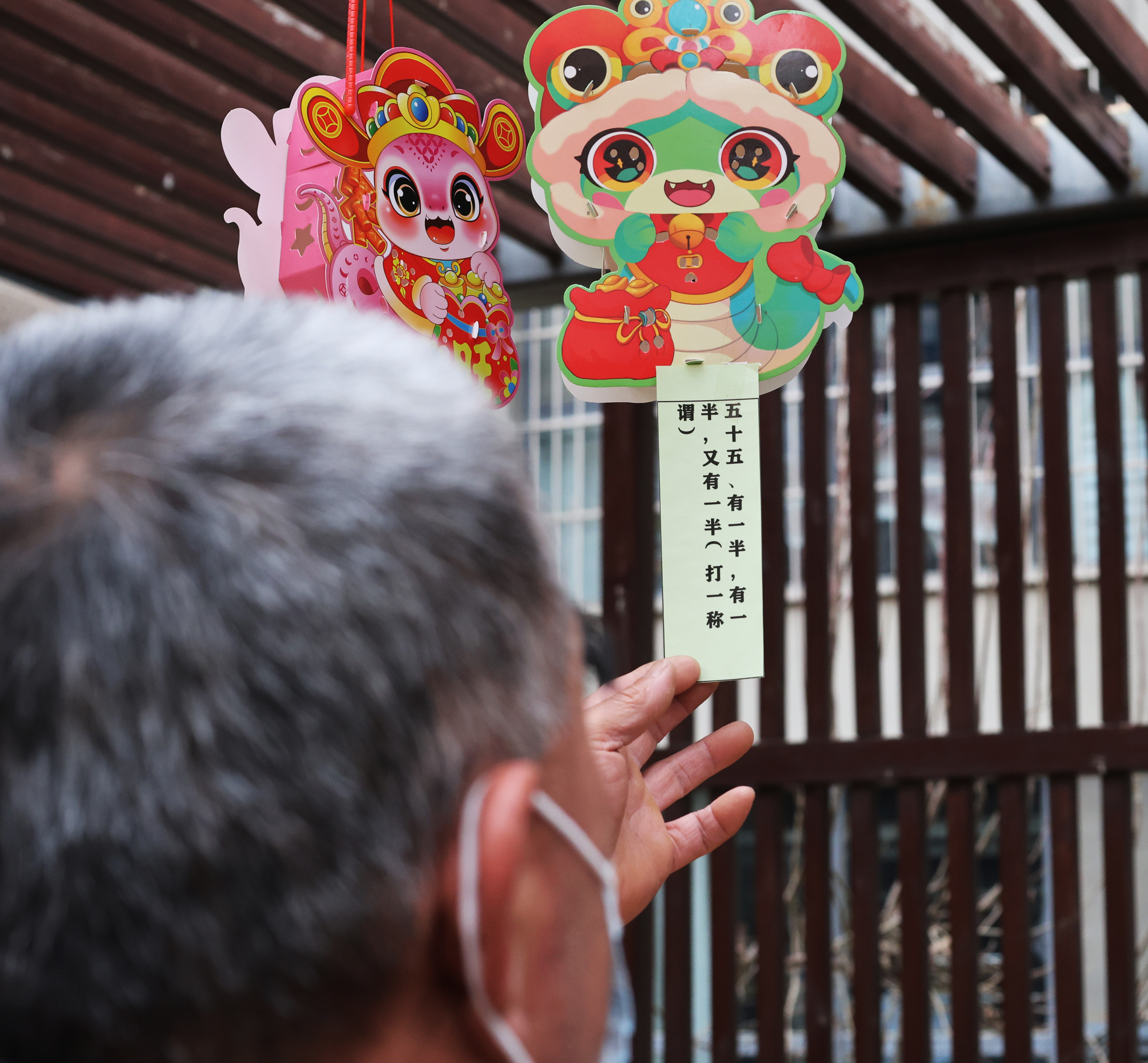 活动现场,五彩斑斓的灯笼高高挂起,随风轻摇。“欢乐猜灯谜”环节备受居民喜爱,一条条写满谜题的彩绸在微风中飘动,引得大家驻足沉思。谜题内容丰富多样,涵盖文化、历史、生活常识等多个领域,既充满趣味,又富有挑战性。一位扎着马尾辫的小女孩,正盯着谜面,眉头微皱,口中念念有词:“二十四、正看八十八,倒看八十八;左看八十八,右看八十八……”不一会儿,她眼睛一亮,兴奋地跑到工作人员面前说出答案,成功赢得挂着灯谜的小灯笼。周围居民也纷纷为孩子的聪明鼓掌叫好,现场洋溢着浓厚的文化氛围。