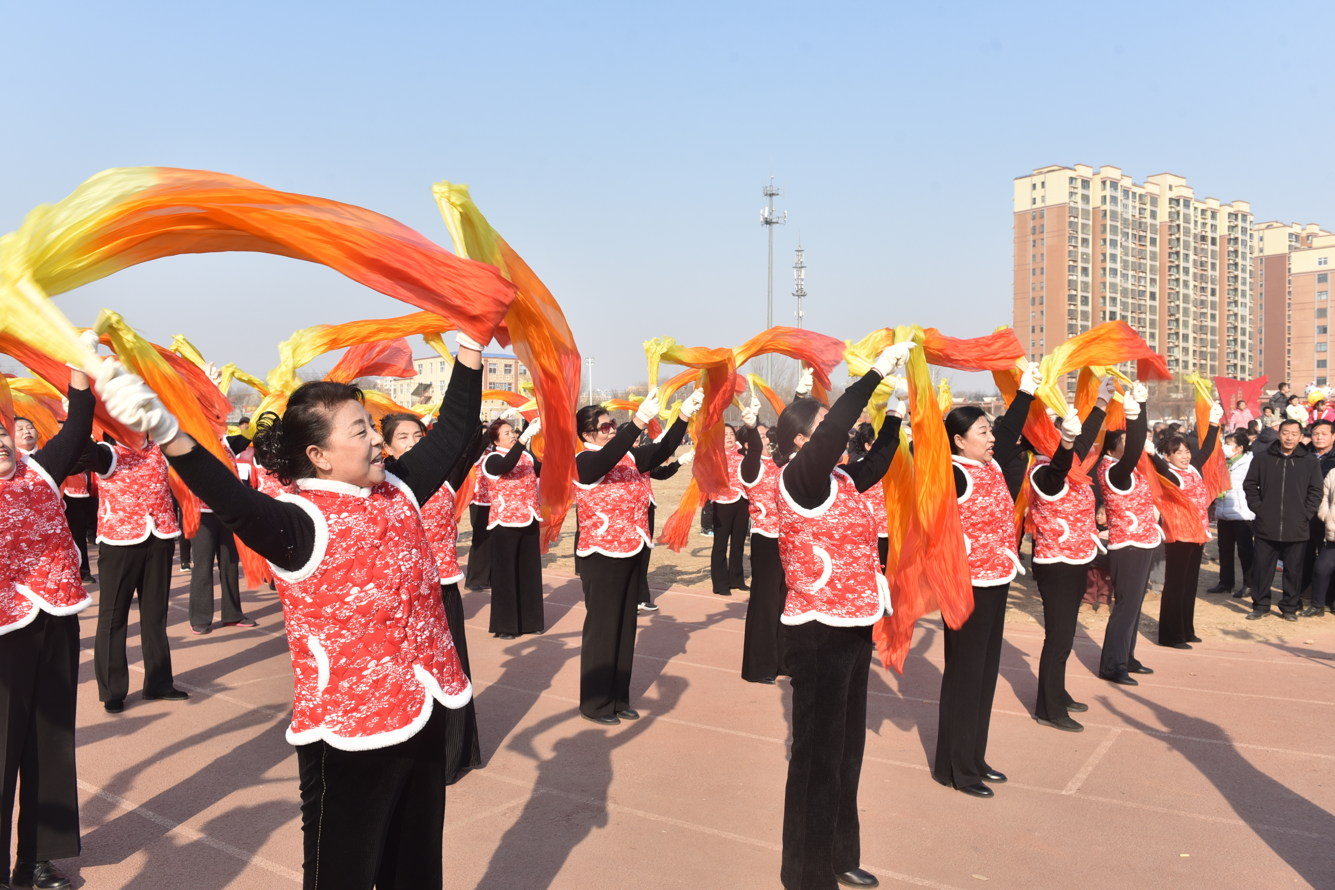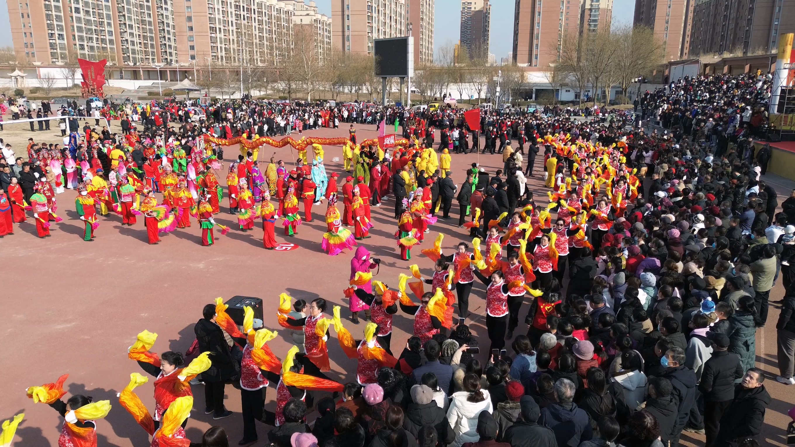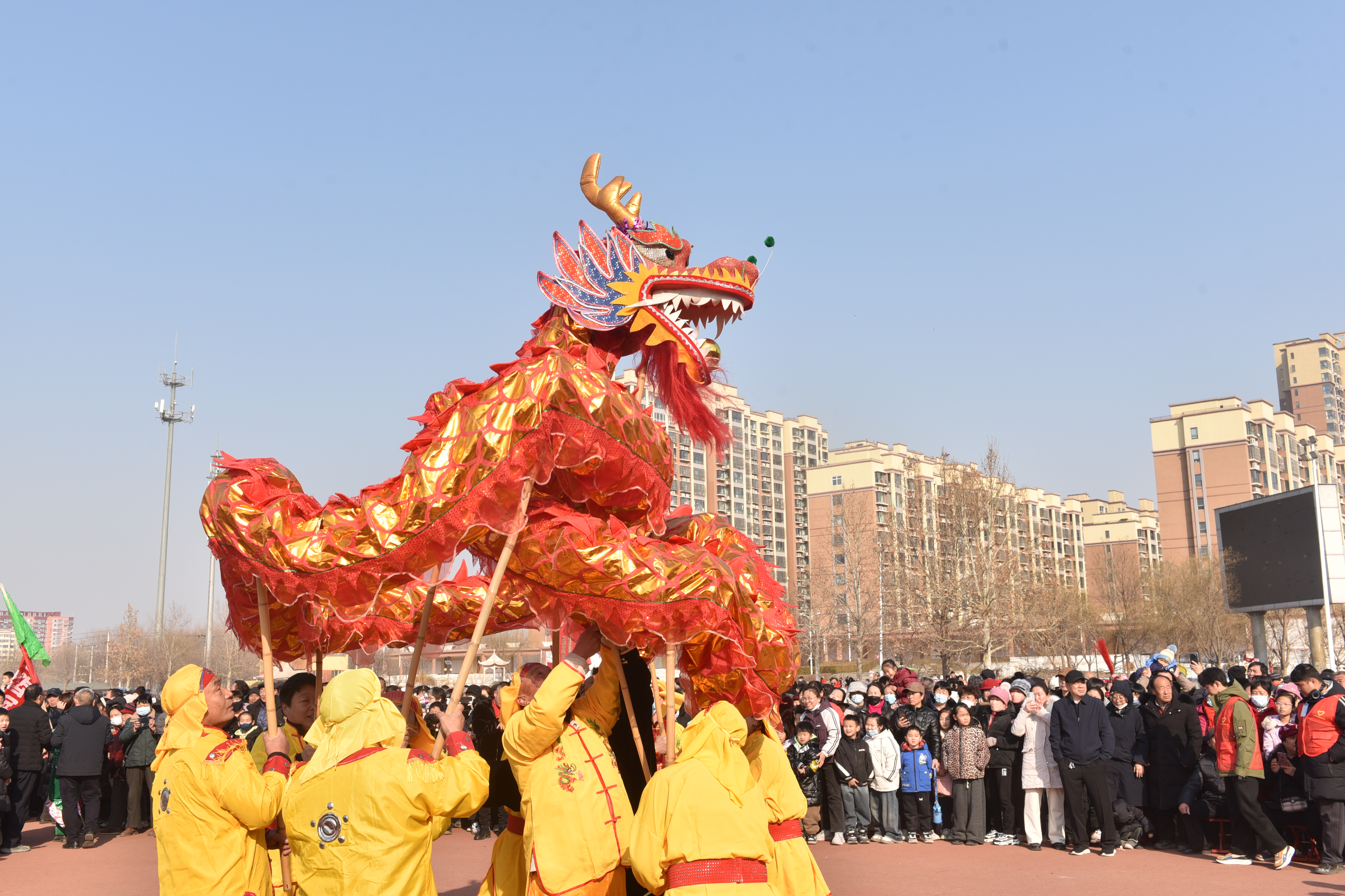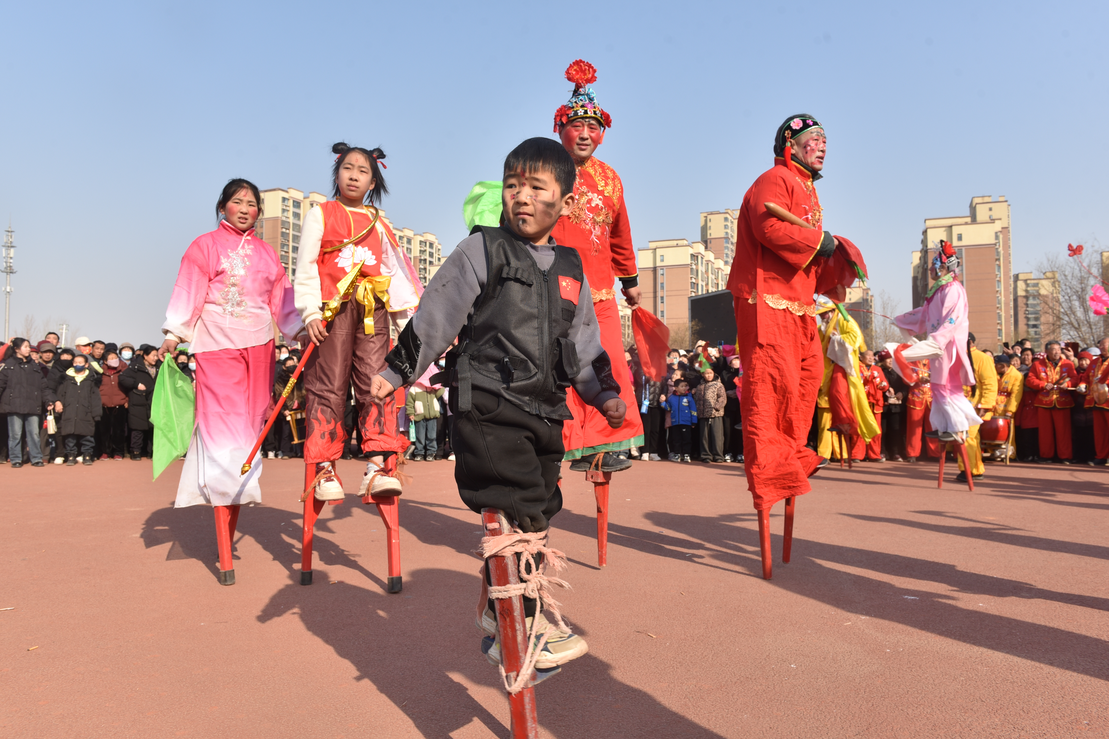 2月10日,衡水市景县五一广场上锣鼓喧天,热闹非凡。当地民俗花会过大年活动在这里精彩上演,舞龙舞狮、跑旱船、踩高跷等特色民俗表演集中呈现,吸引了上千名群众前来观看。