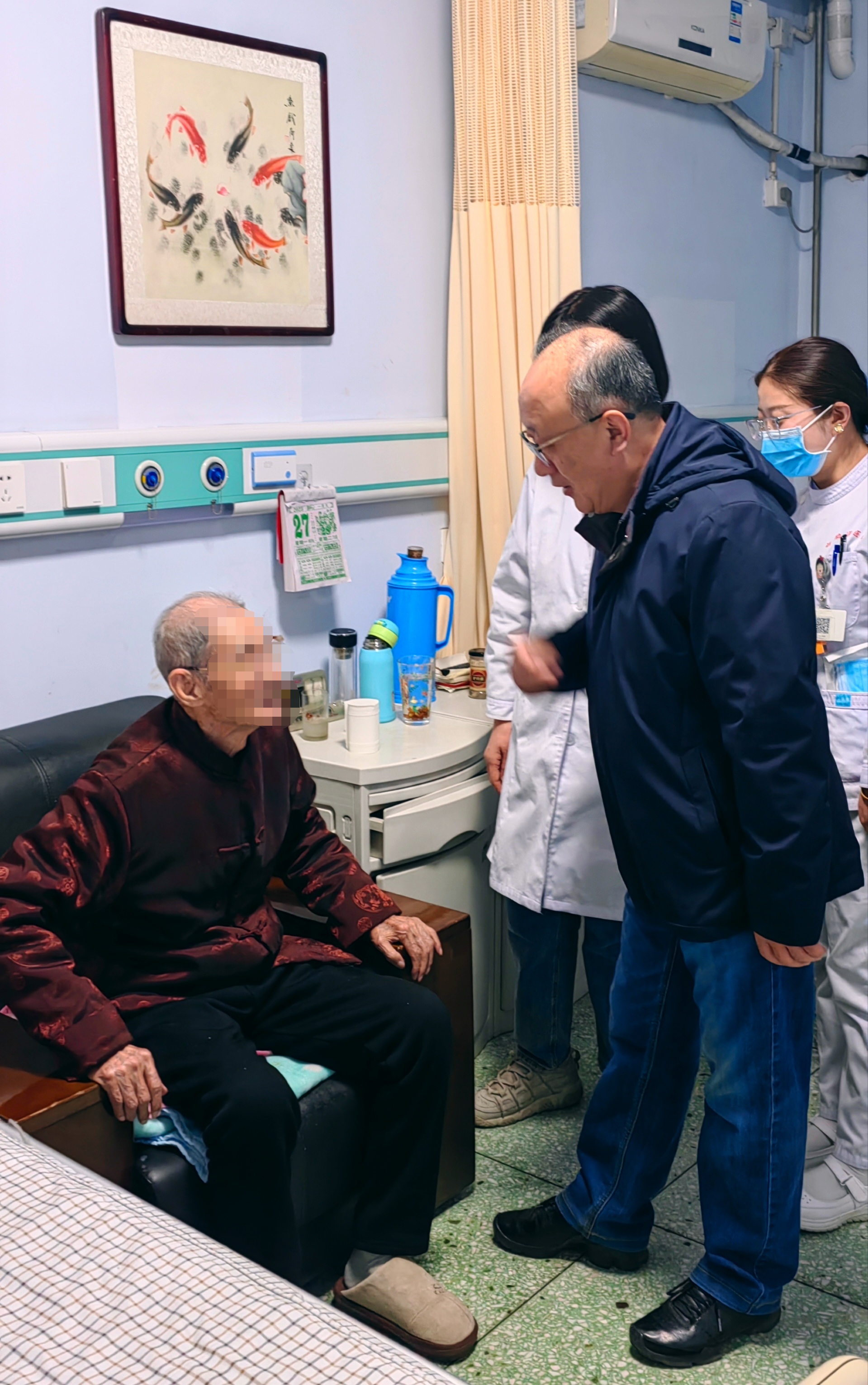 除夕之夜,衡水市人民医院(哈励逊国际和平医院)党委书记郑辉,来到东院区哈励逊国际和平医院医康养中心看望在这里过年的94岁宋爷爷。