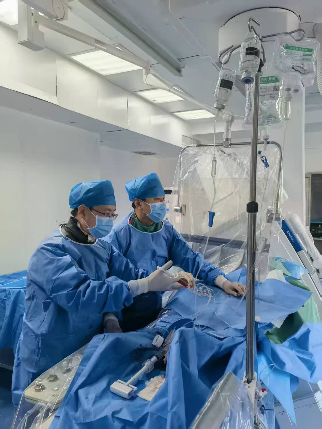 中国胸痛中心联盟全国飞检专家、衡水市医学会心血管病学分会主任委员、衡水市医师协会心血管医师分会主任委员,哈院心血管内科主任张慧晶(右),除夕下午为患者手术,成功挽救了患者生命。