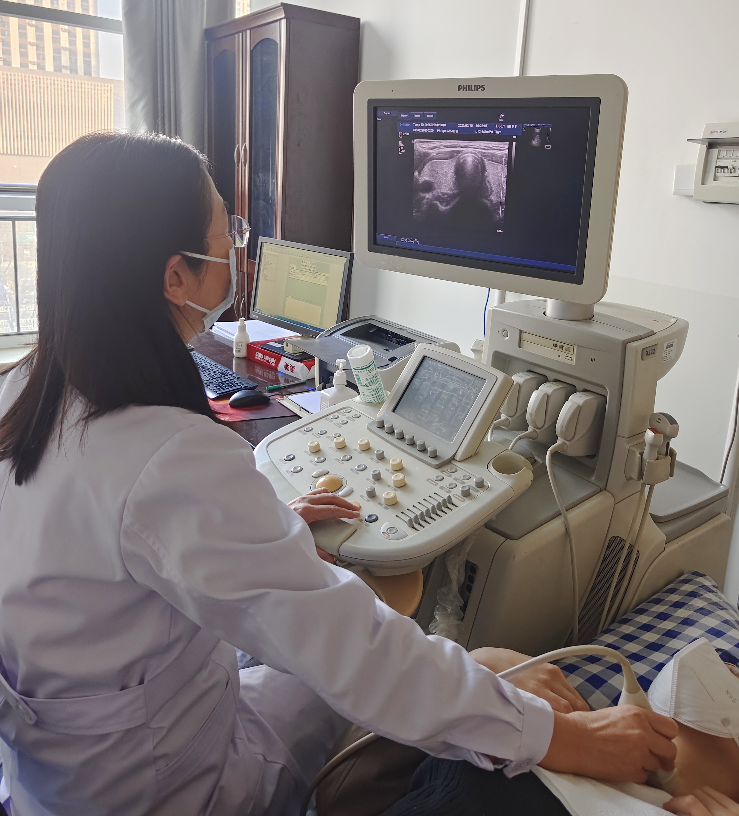 哈院超声一科,负责主院区的超声介入诊疗工作。他们在超声介入诊断与介入治疗于一体上进行布局,开展了多种介入超声诊疗技术,其中甲状腺细针穿刺活检、难治易复发的巧克力囊肿硬化治疗等多项超声介入手术均填补衡水空白。超声一科主任孙霞介绍,春节期间前来就诊患者始终居高不下,从正月初三的500人次到正月初六的800人次,全员上岗,10个检查诊室早到岗晚下班,确保群众满意就医……