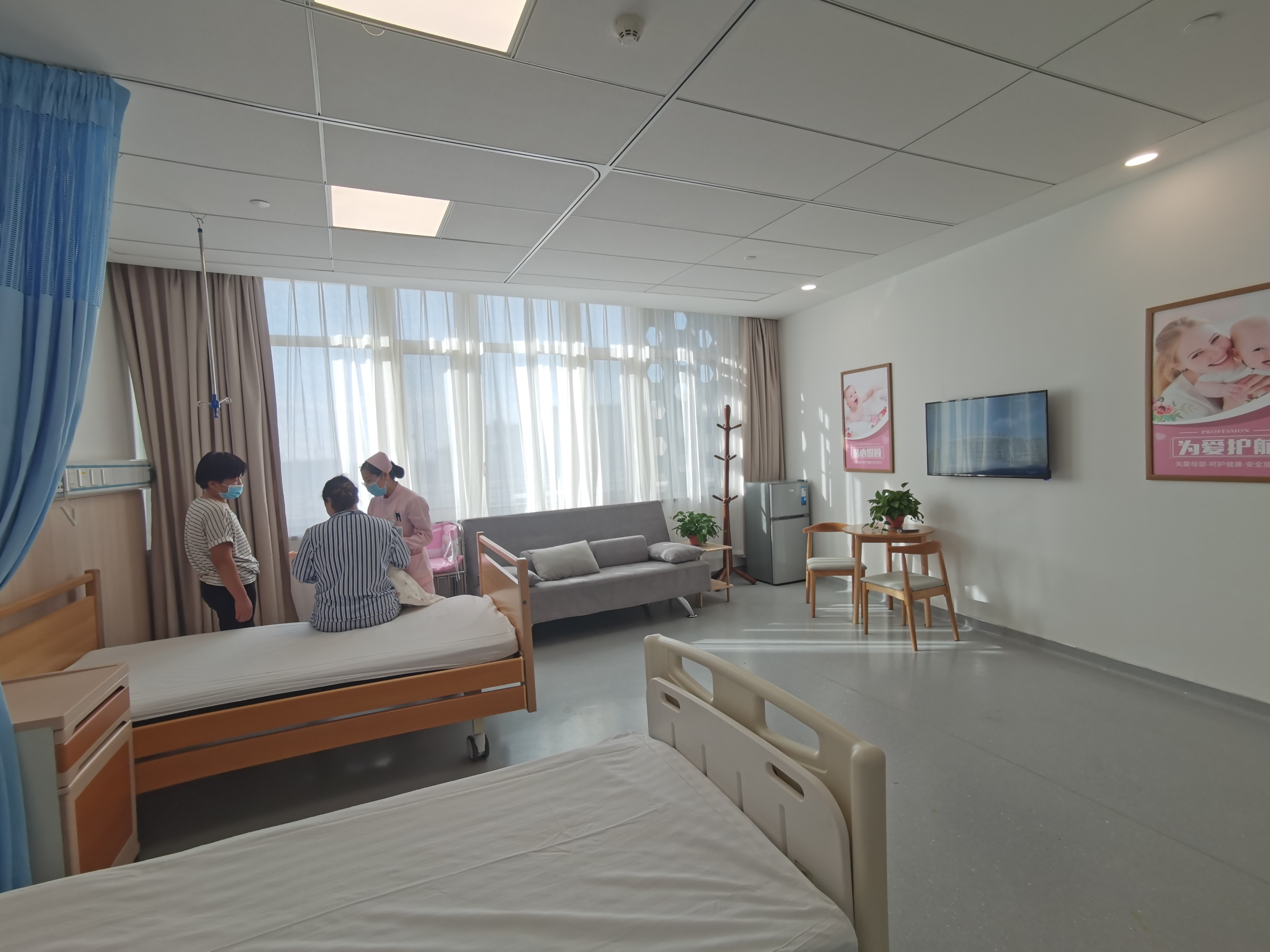 产科门诊、病房整体搬迁至南院区后,新增至两个病区,实现了全面提档升级。图为家庭化单间病房,集“家庭化、人性化、品质化”于一体,让孕妇实现了幸福分娩。