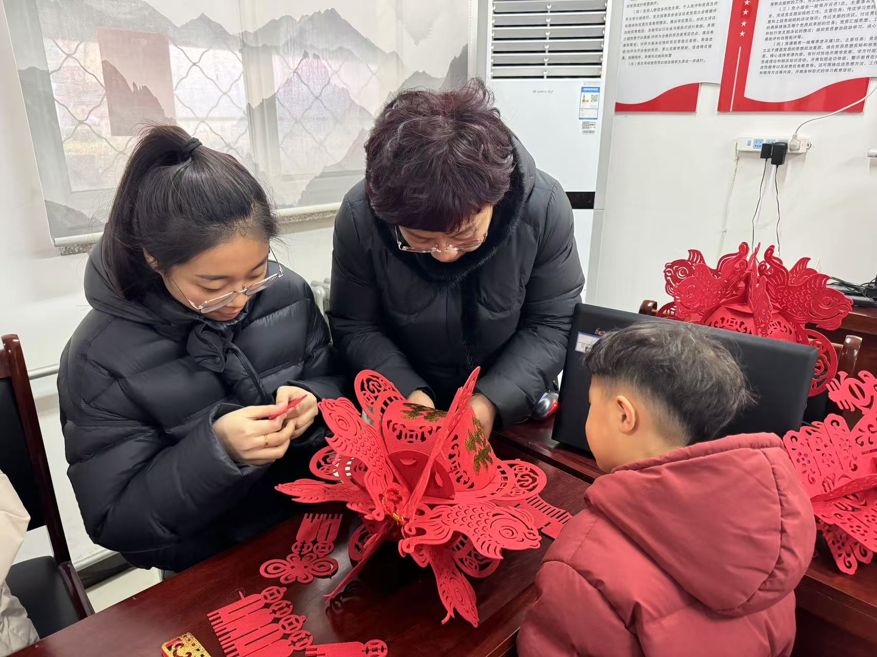 活动现场张灯结彩,处处洋溢着喜庆的节日气氛。社区志愿者们为孩子们讲述元宵节的由来和习俗,介绍漂漆灯笼的历史起源和文化内涵,详细讲解了中国漆艺的传统技法和节日灯笼的象征意义,让孩子们更深入地了解中华传统文化。小朋友们在志愿者老师的帮助下或剪或折或贴,充分发挥想象力与创造力,用五彩颜料在灯笼上尽情描绘,在欢声笑语中,一个个精巧的花灯在孩子们的手中诞生,花灯上绘着圆润可爱的柿子、灵动活泼的兔子、大大的福字……每个作品都蕴含着美好的祝福。同时,社区志愿者们把提前准备的灯谜或挂在悬挂的气球上或贴在墙上或用电脑动画展示,灯谜谜题涉及范围广,包括字谜、人物谜、成语谜和地名谜等,既具娱乐性,又具知识性。居民们积极参与,有的冥思苦想、有的互相交流、也有的手机“百度一下”,志愿者们也会给一点小小的提示,让思索的居民恍然大悟而又喜不自胜,猜对答案的居民还可以领取社区精心准备的小礼品。