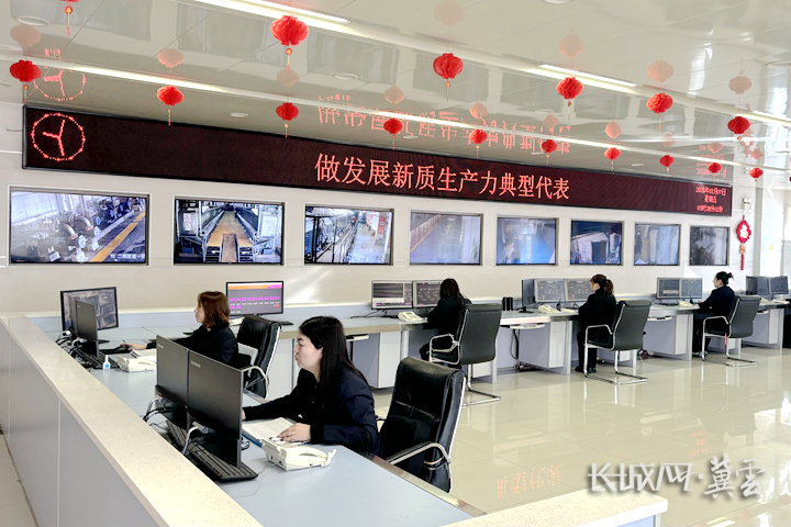 在三友化纤调度指挥中心内,一块块显示屏映入眼帘,上面清晰地展示着各条生产线正以惊人的速度高效运转。