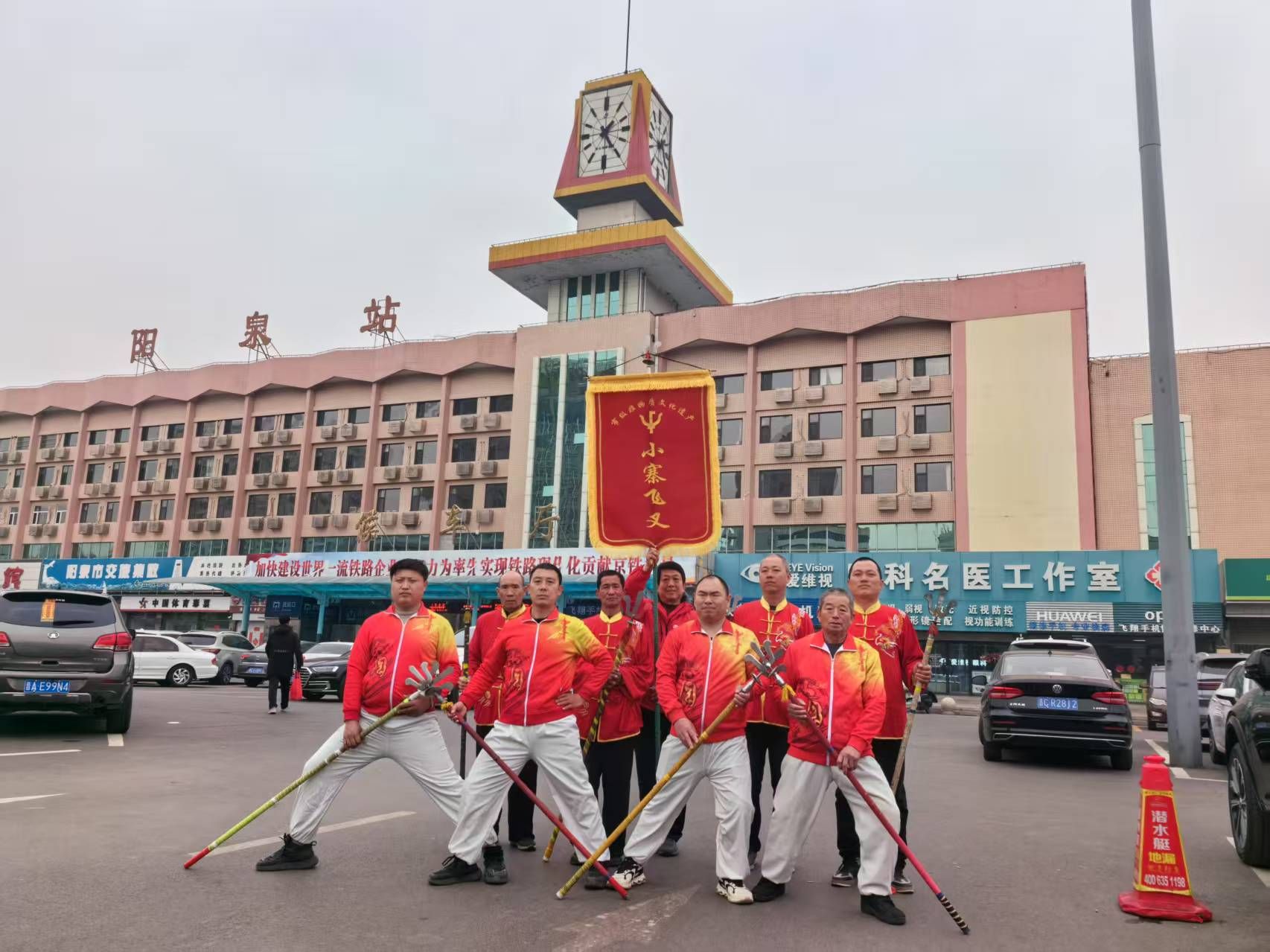 井陉县小寨飞叉队在山西省阳泉站演出留念
