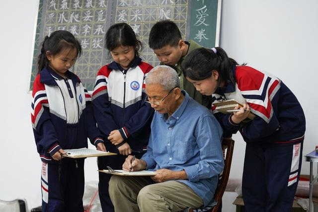“我能活多久,我就教多久,只要身体允许,我就一直教。”长时间写字,让李贵江的右手得了腱鞘炎,但他依旧坚持上课。这些学生似乎已经成了他的“亲人”,要是因为打针消炎不能跟这些孩子见面,他就像“两天没吃饭”一样。