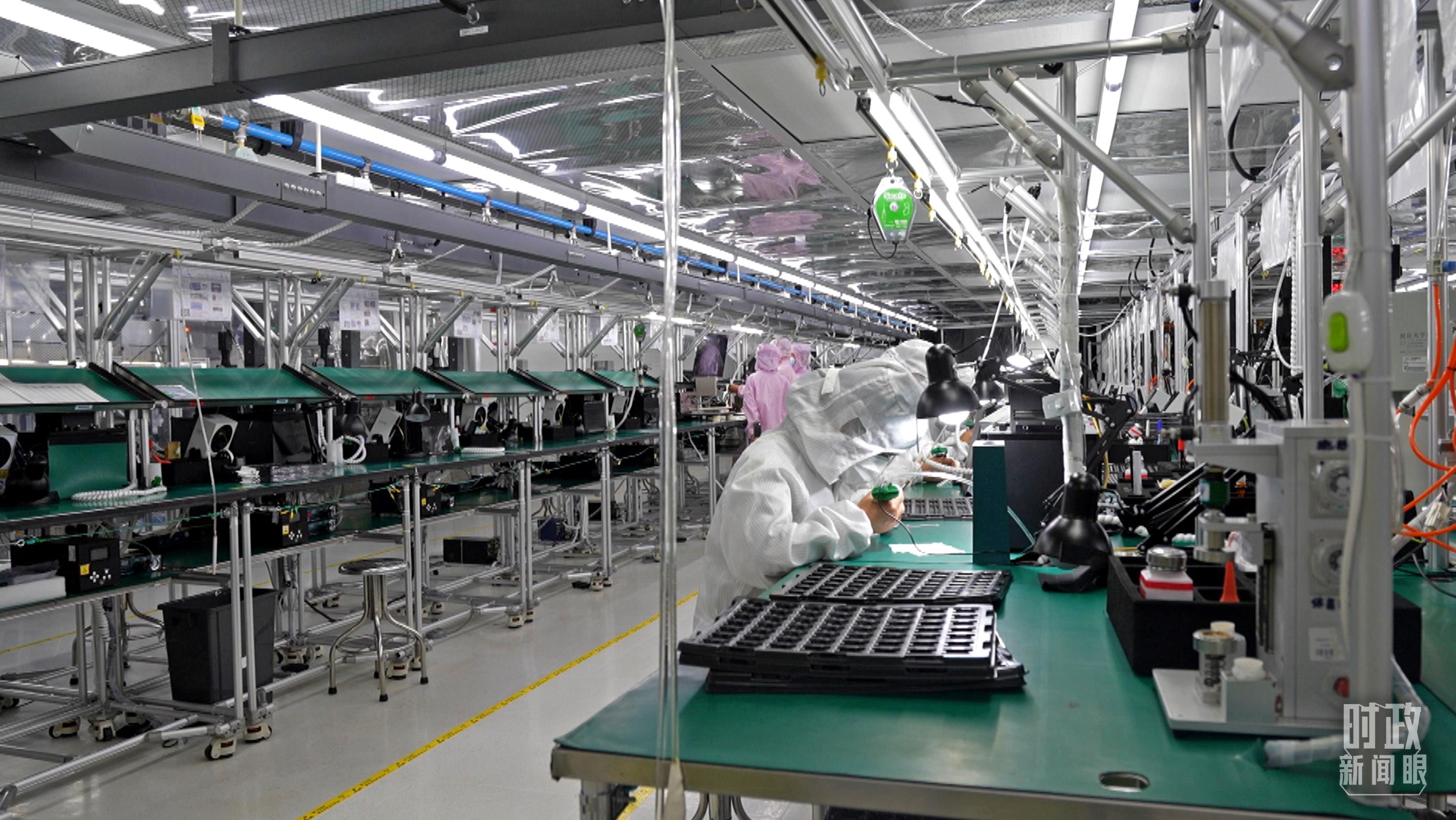 △四川省宜宾市极米光电有限公司的无尘车间光机组装线。(总台央视记者范学禹拍摄)