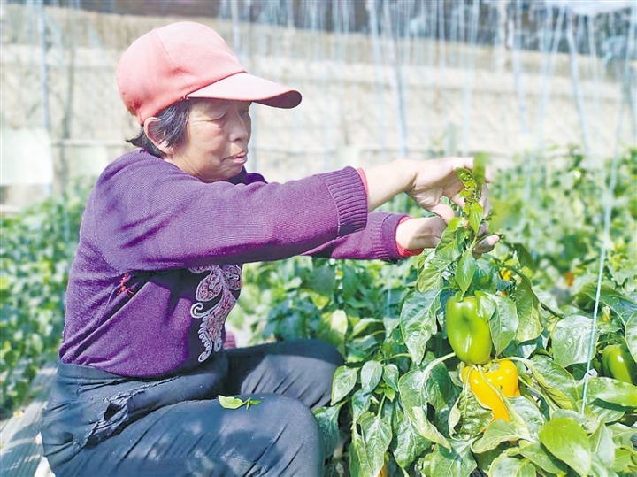 在菜营合作社,工作人员对菜椒苗进行整枝打理。 本报记者 王洋洋 本报通讯员 王金艳 摄