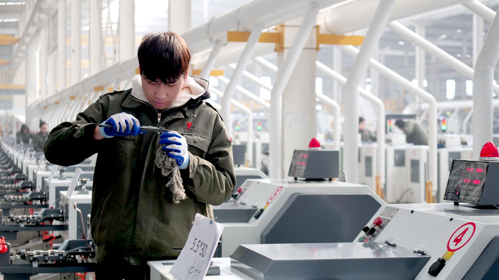 河北喜力德五金制造有限公司的工人们在检查设备运行情况。新华社记者 王昆 摄