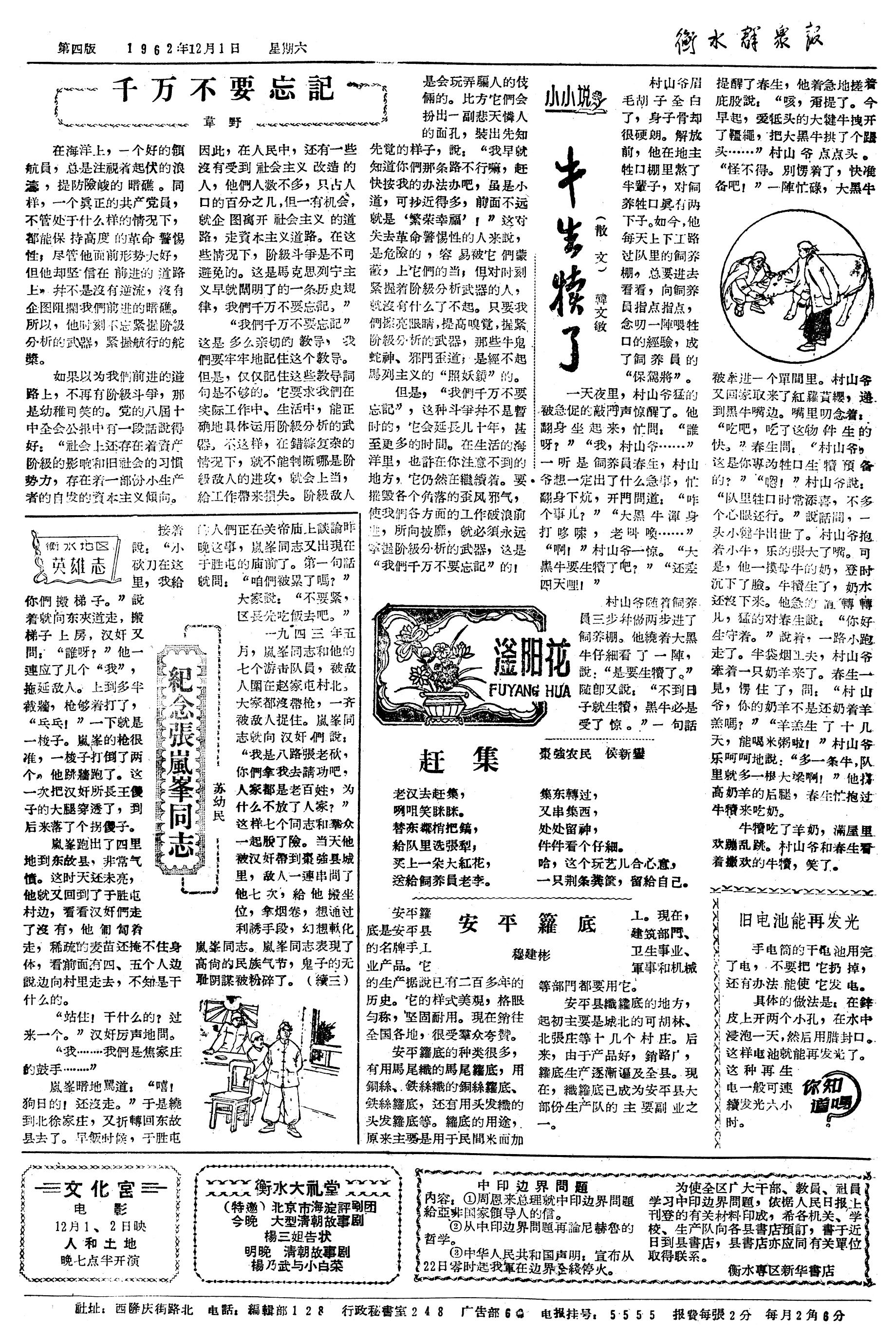 1962年12月1日《衡水群众报》