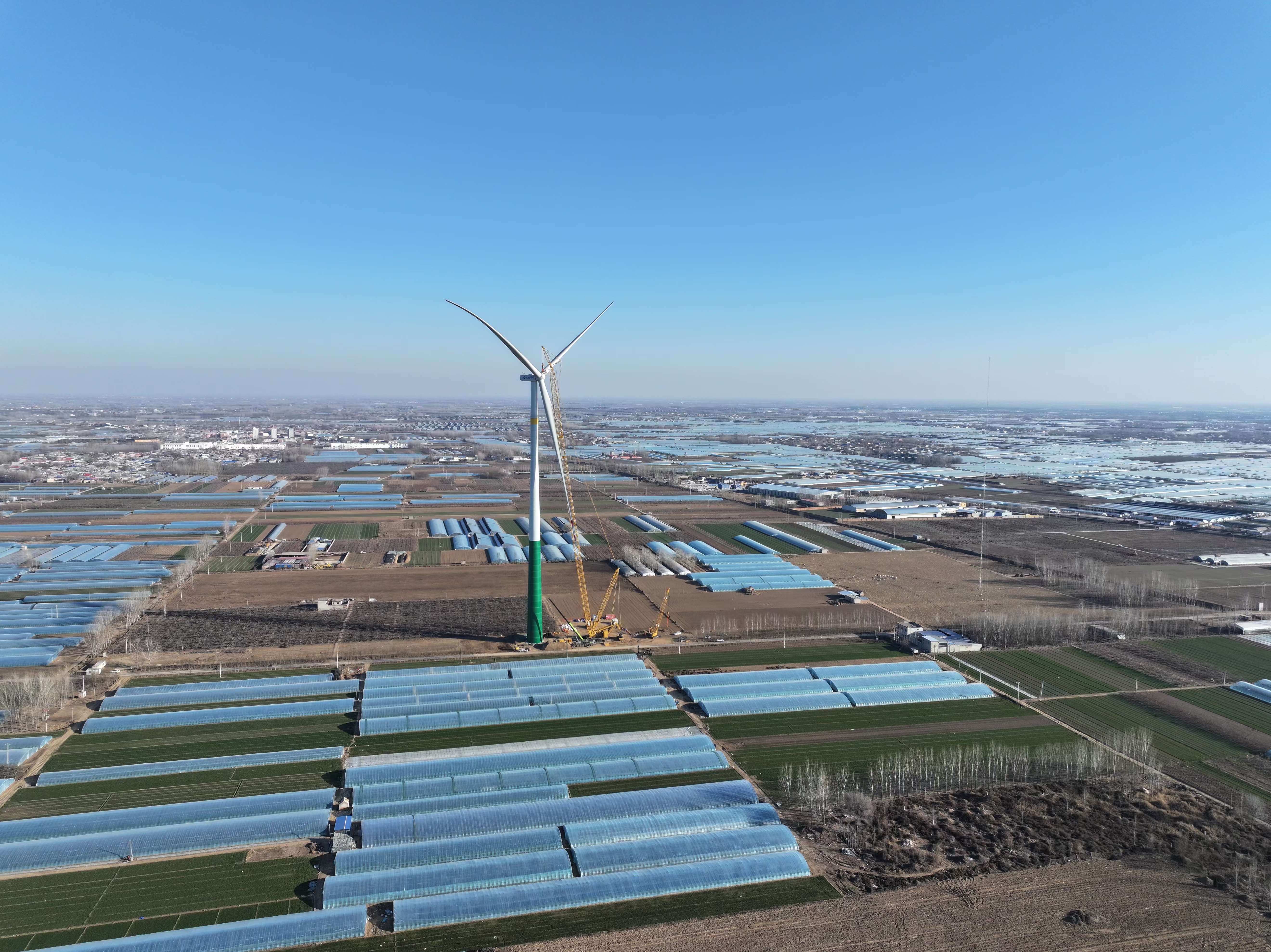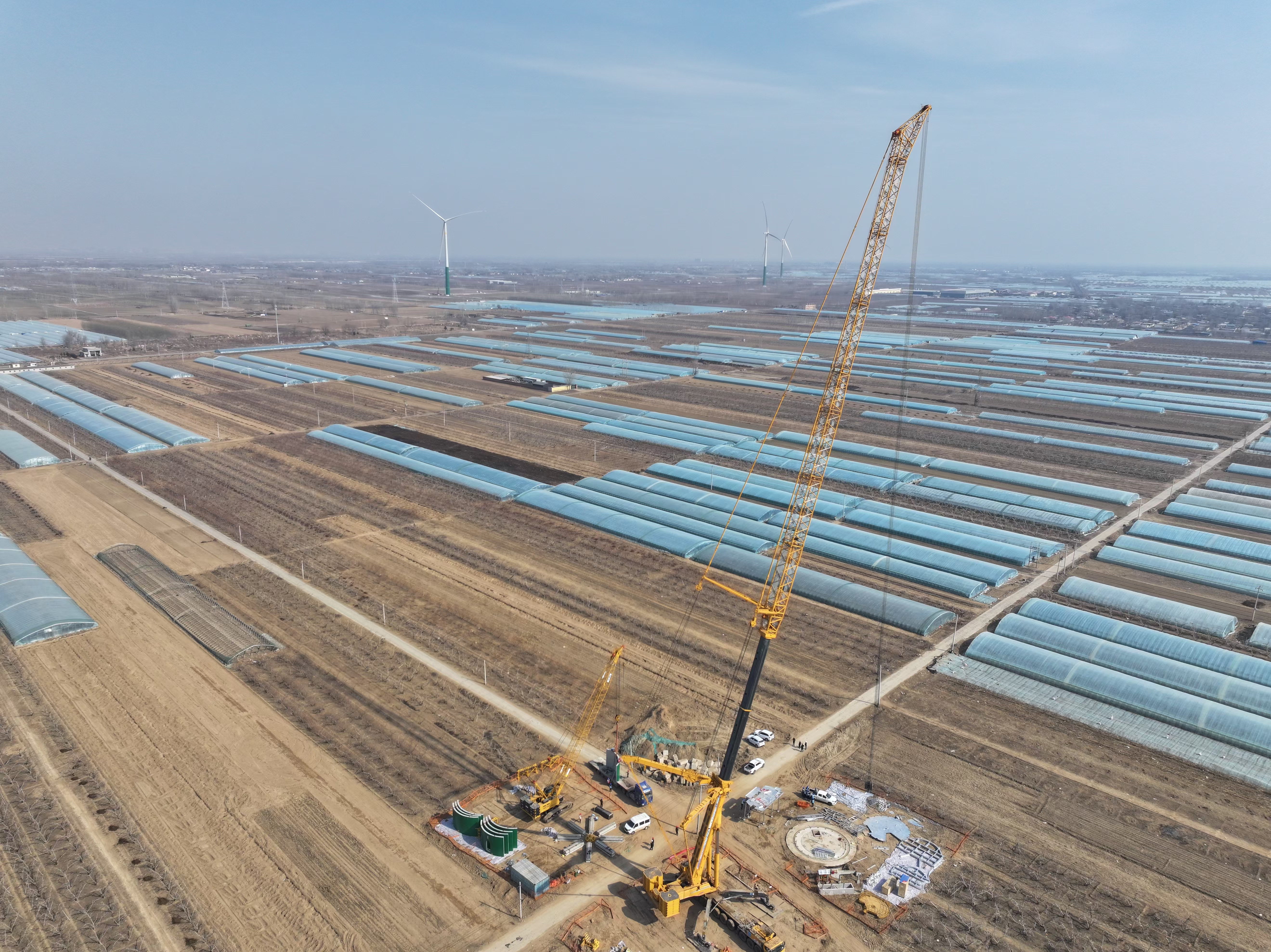 在饶阳县大官亭镇广袤的土地上,高大的风力发电机组擎天而立,起重机不停歇,运输车辆来回穿梭,工人忙碌作业……日前,走进华润饶阳100兆瓦保障性风电场项目建设现场,到处一派热火朝天的施工景象。