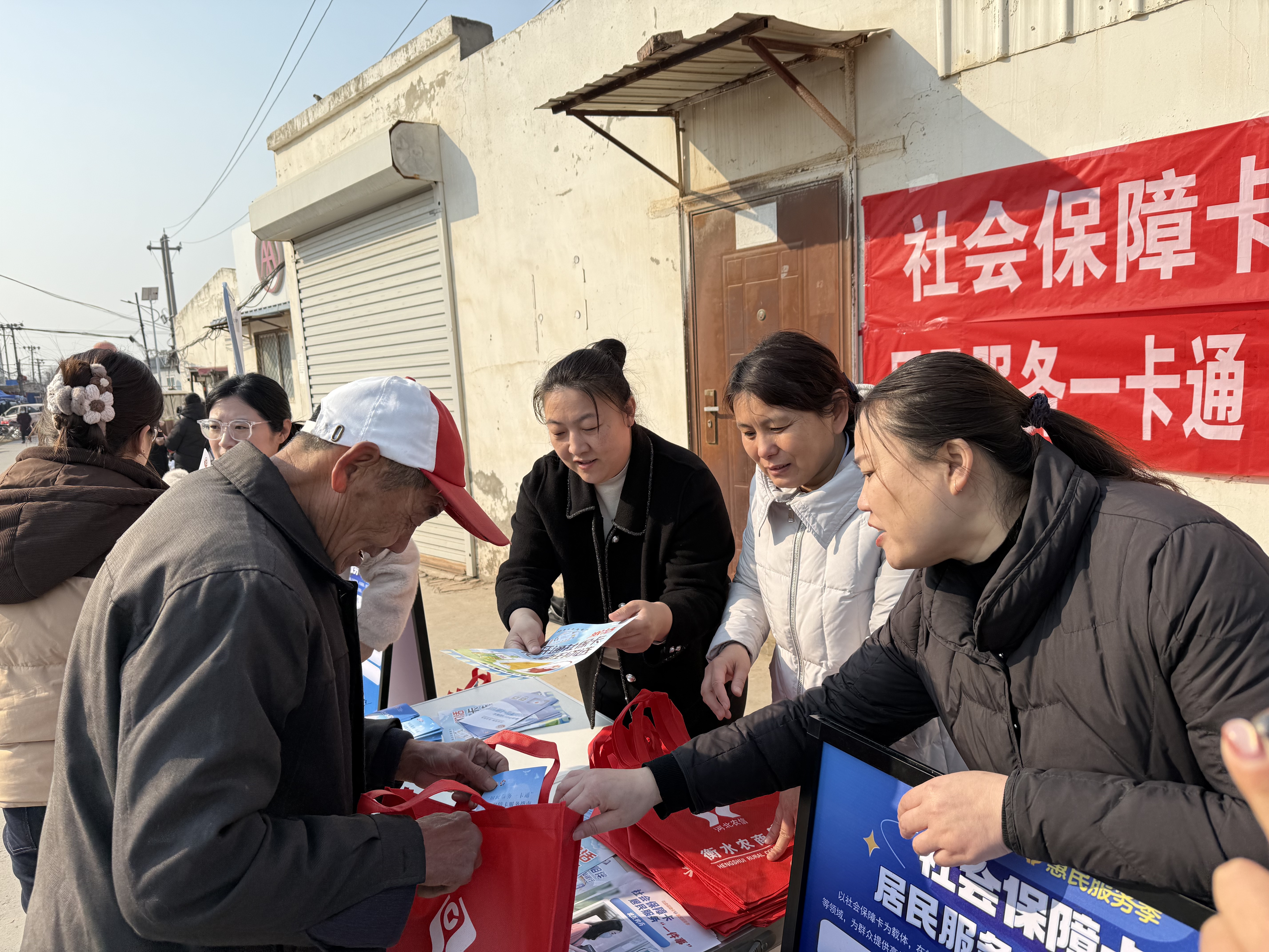 为全面推进社保卡"一卡通"民生工程,2月20日,衡水市人社局联合衡水农商银行,以社保卡发行25周年为契机,在刘家南田村大集开展“社会保障卡惠民服务季”进大集宣传及服务活动。活动聚焦“居民服务一件事”,通过“宣、办、服”三位一体模式,累计服务群众800余人次,取得显著成效。