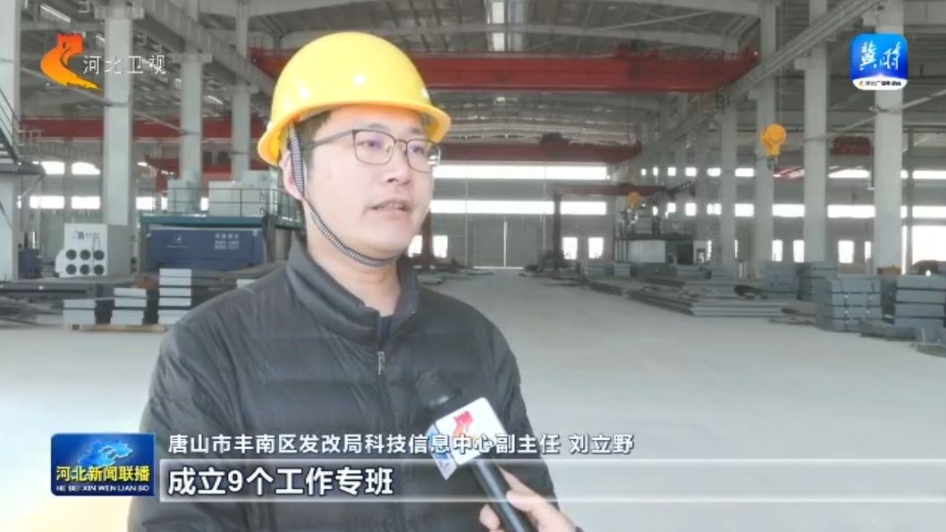 重点项目"争春早"。我现在是在唐山市丰南区唐山钢硕科技有限公司智能物流机器人的项目现场。目前我们可以看到,两个厂房主体框架已经完工,内部设备安装与调试正加紧推进中。这里也将成为唐山市第一家物流机器人的生产研发企业。
