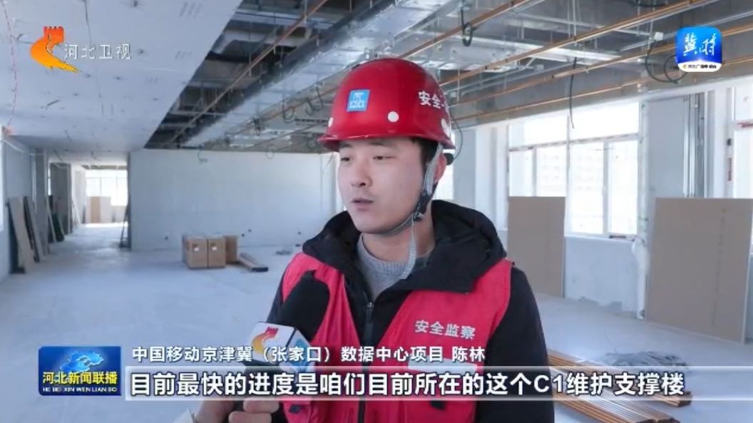 重点项目"争春早" 。我现在是在中国移动京津冀(张家口)数据中心项目的建设现场 ,现在呢这里的工人们正在克服低温、大风等不利因素的影响,加紧施工,确保工程如期完成。