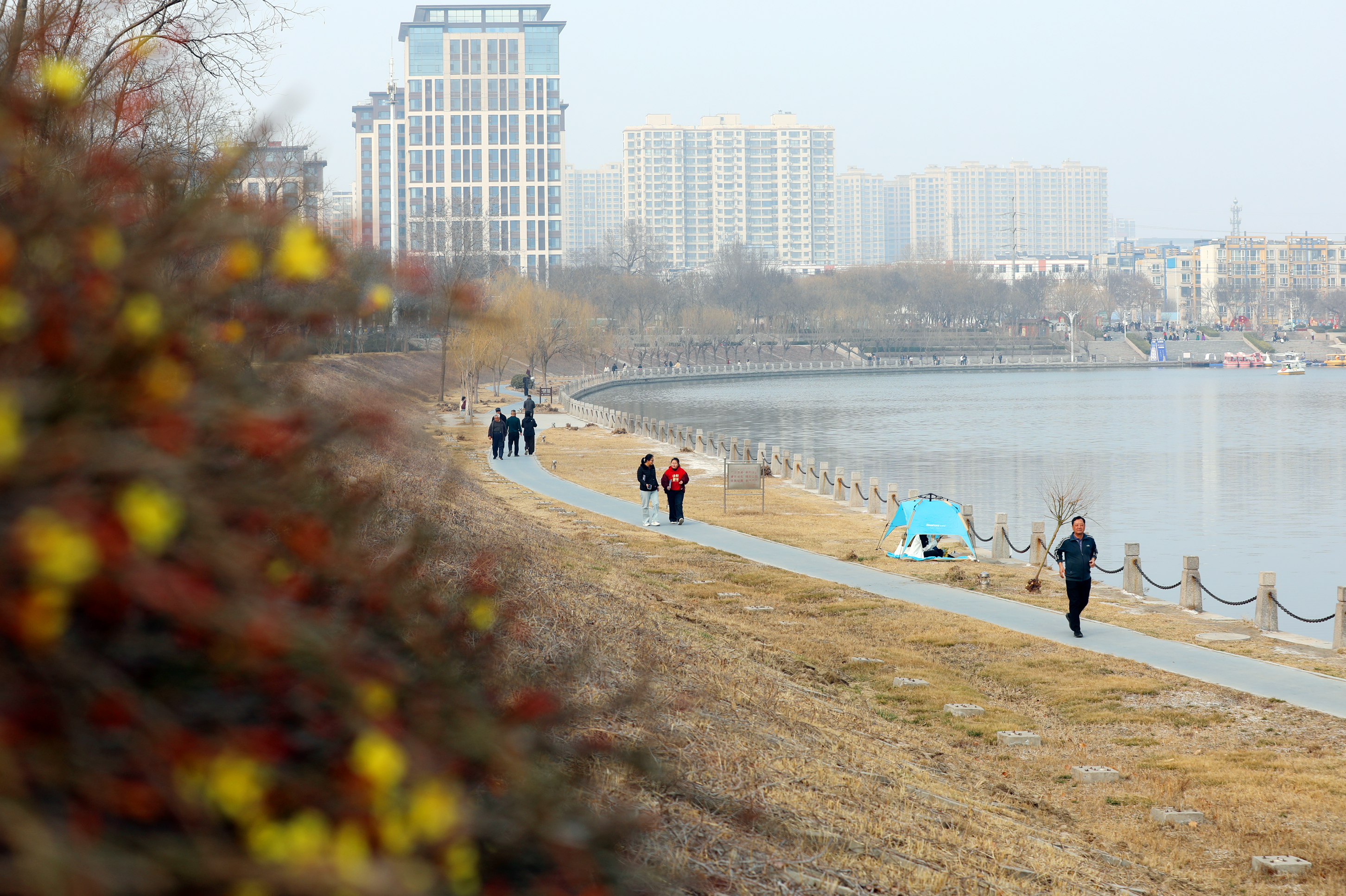 漫步于滏阳河畔,杨柳依依,碧水潺潺,而那丛丛簇簇金黄色的迎春花,宛如大自然精心点缀的璀璨明珠,与悠悠河水相映成趣,共同勾勒出一幅美轮美奂的春日画卷,令人心醉神迷。市民们纷纷走出家门,或是与家人携手相伴,或是约上知心好友,一同漫步在这充满诗意的河畔。他们或停下脚步,静静凝视着娇艳的花朵,沉醉于这美好的春光之中;或轻声交谈,分享着生活的点滴与喜悦。每个人的脸上,都洋溢着幸福与满足的笑容,仿佛这盛开的迎春花,也绽放在了他们的心田。