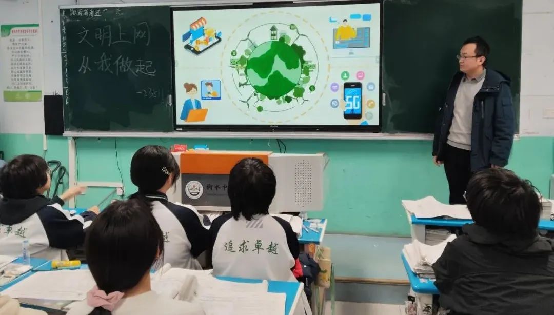 为提升学生网络素养,共筑安全文明网络空间,引导学生树立正确的网络价值观,2月28日,衡水中学实验学校高二5部组织开展了以“文明上网从我做起”为主题的思政课活动,全体同学积极参与,反响热烈。