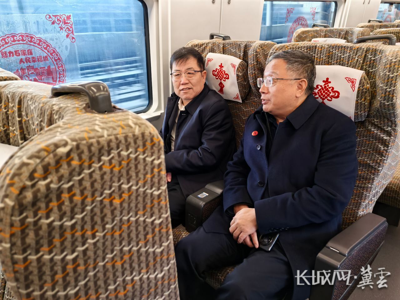 赴京报到的代表委员们在列车上就共同关注的问题热烈讨论、交流看法。长城网·冀云客户端记者 武新杰 摄