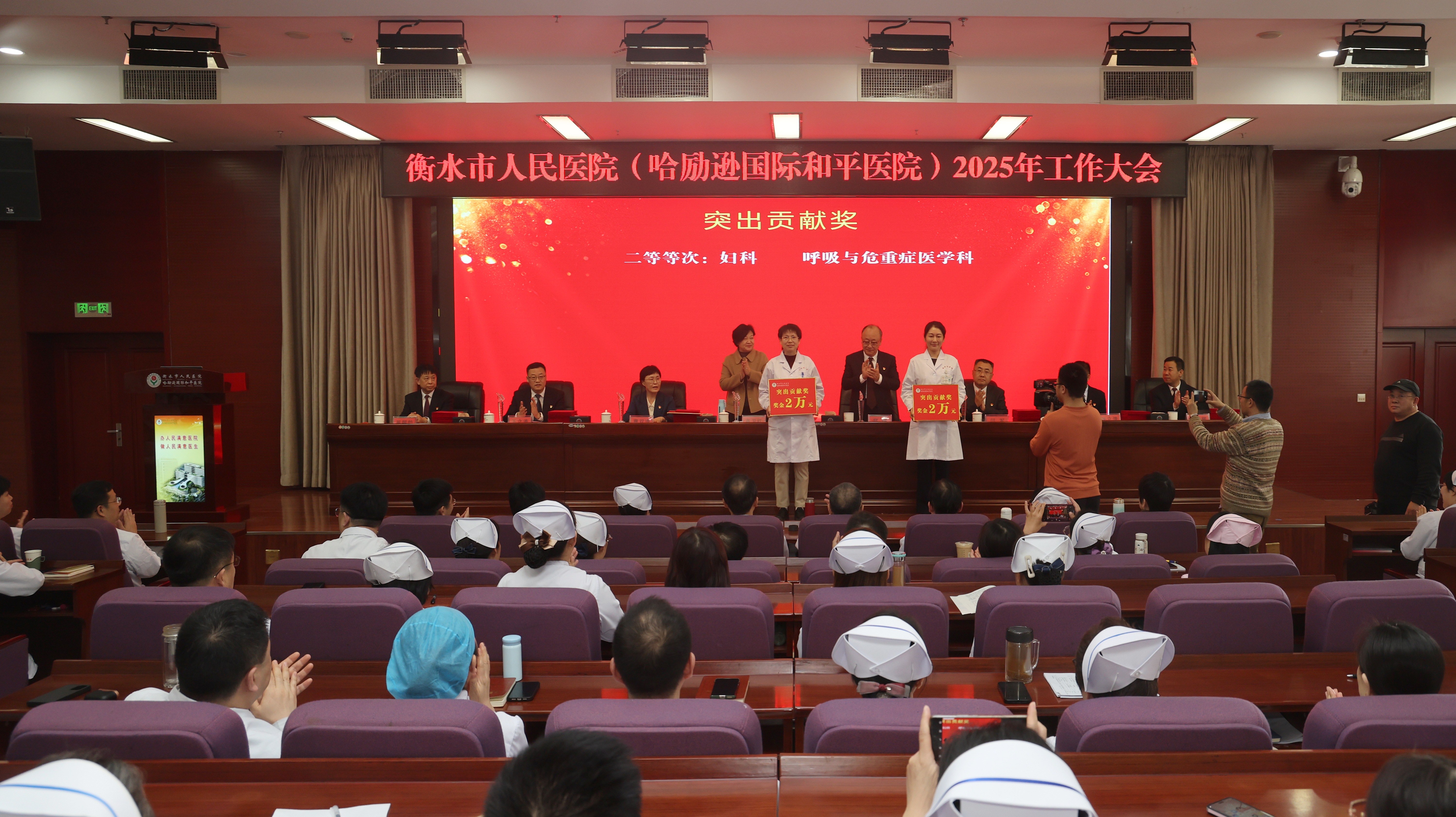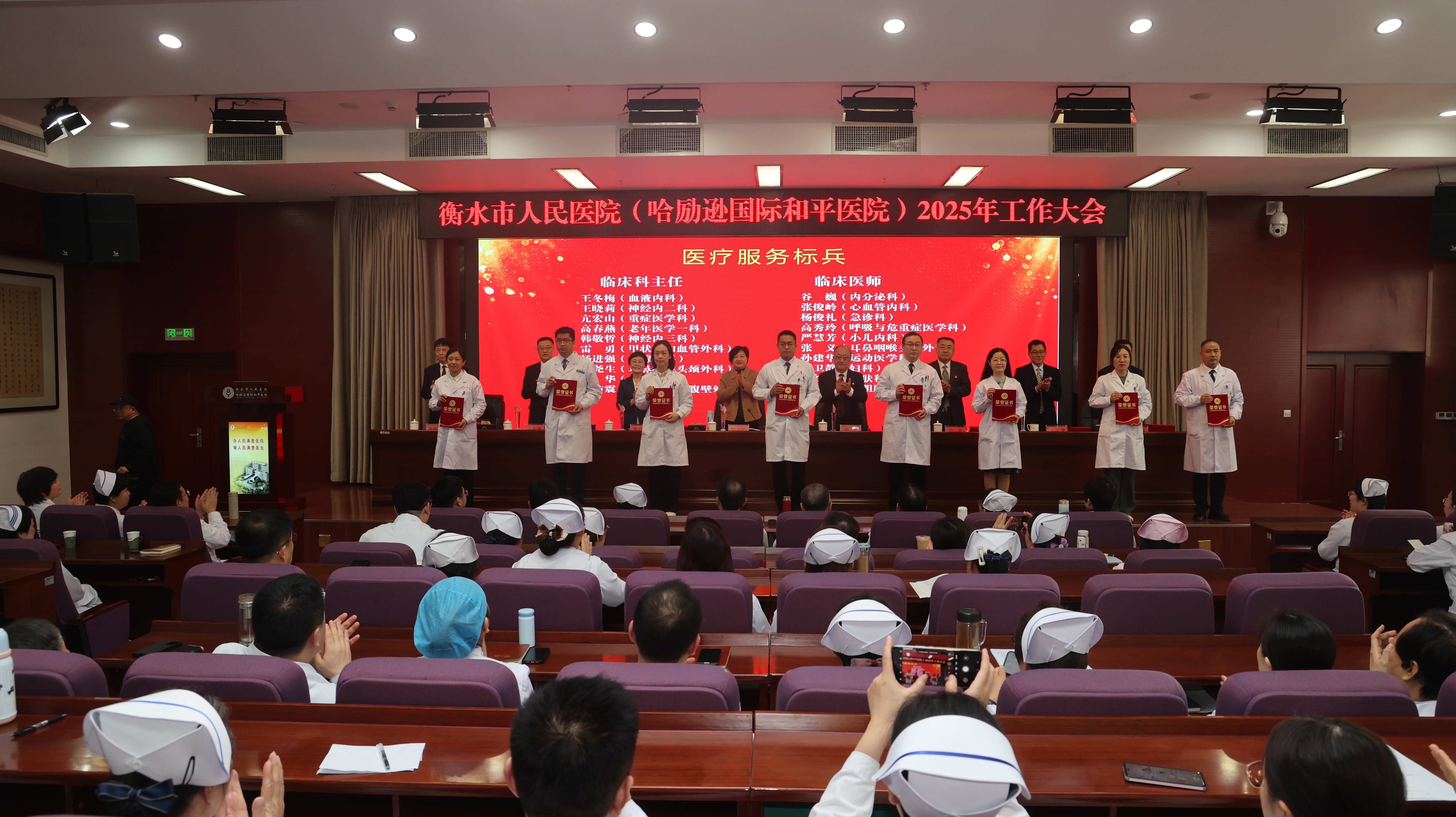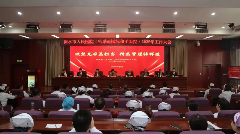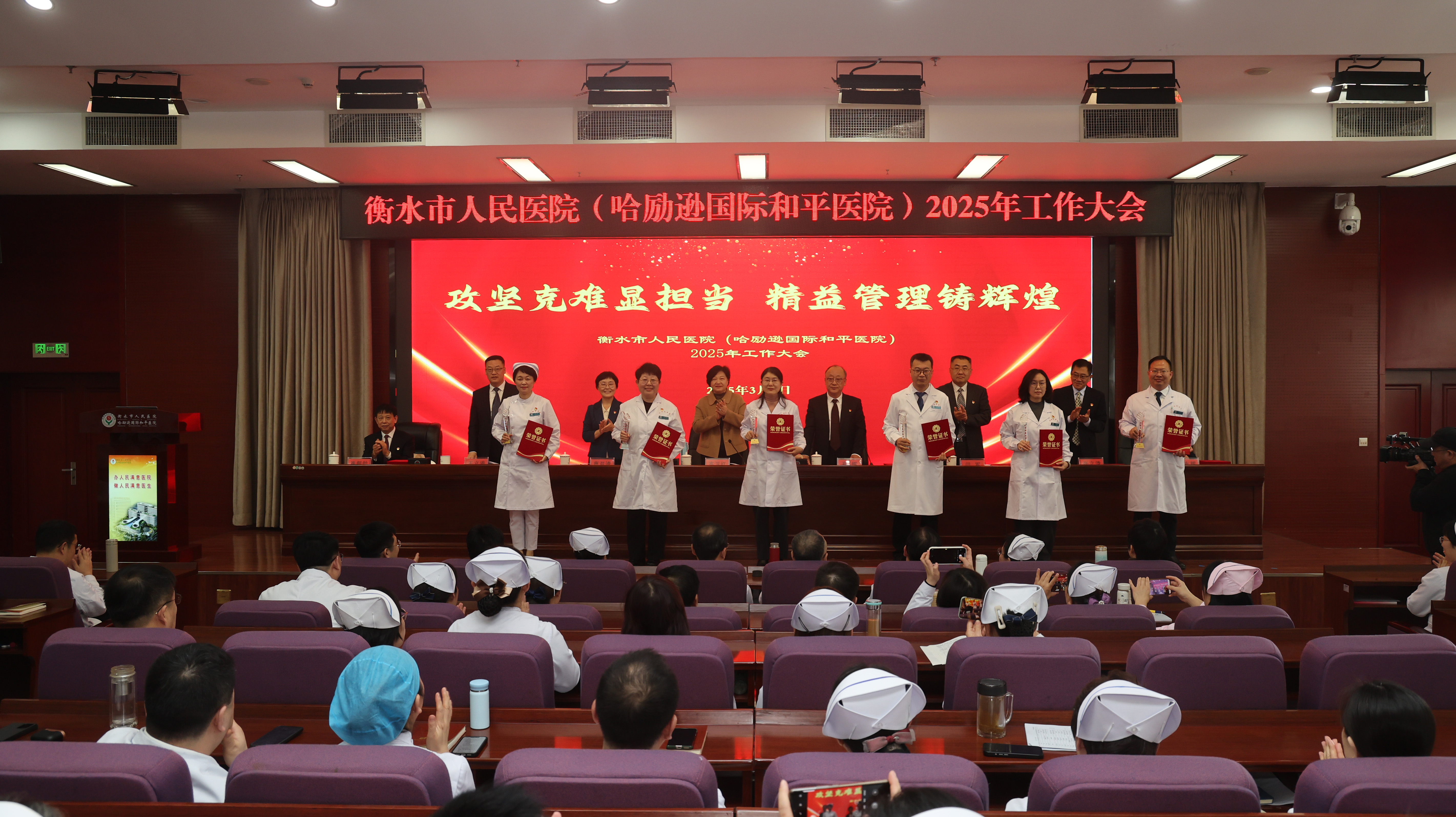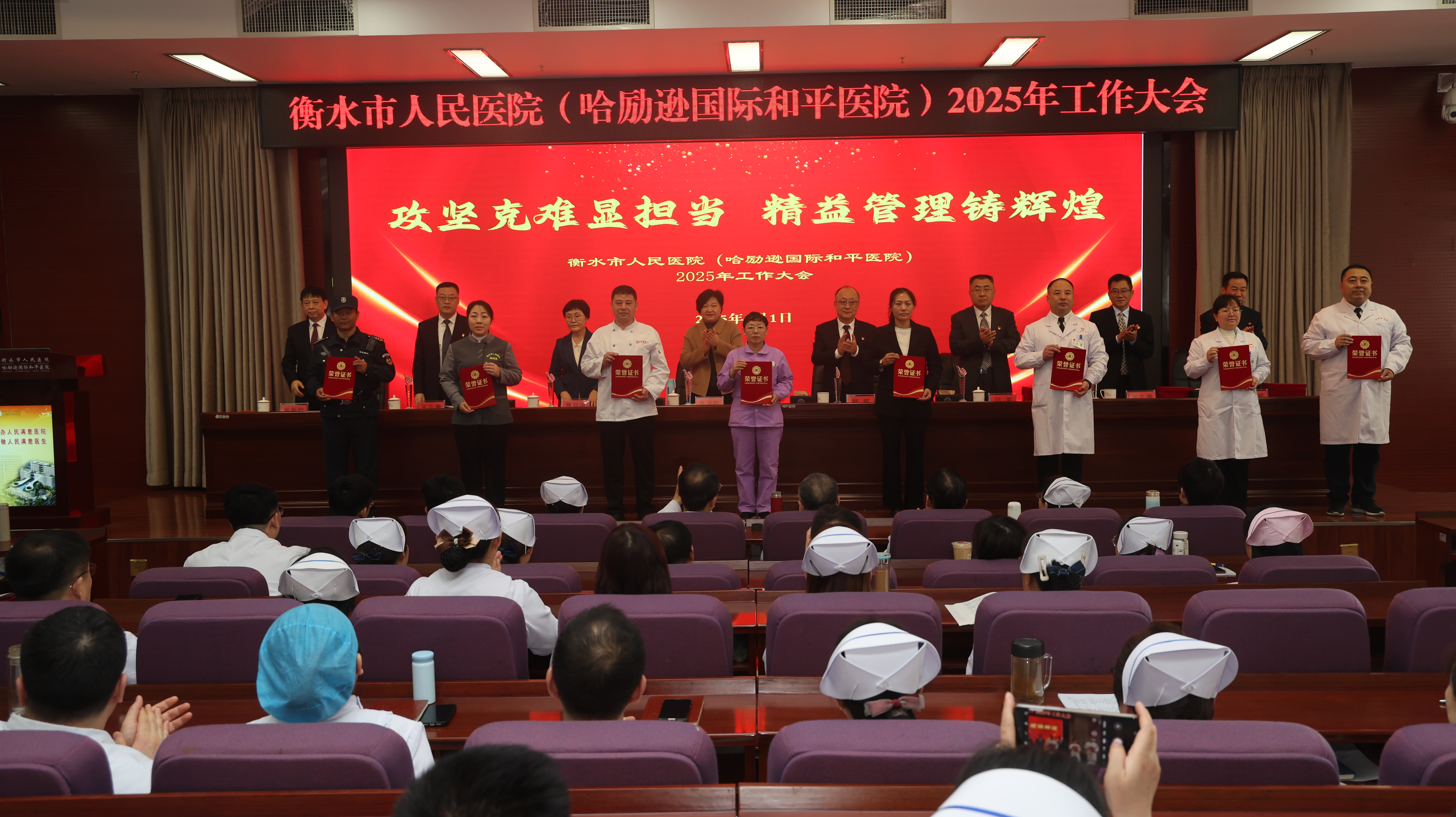 3月1日下午,衡水市人民医院(哈励逊国际和平医院)召开2025年工作大会,结合对国家政策动向的适时关注和对自身发展实际的精准把握,总结2024年工作,部署2025年任务,表彰先进典型,凝聚榜样力量,奋力推动高质量发展向上突围。